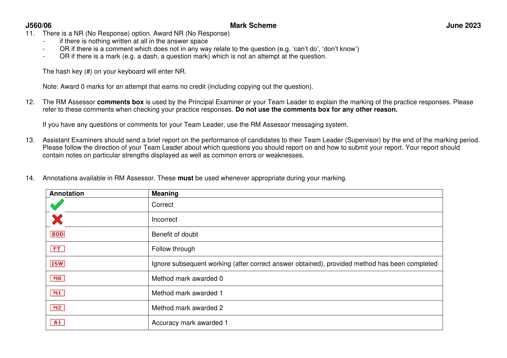 OCR GCSE MATHEMATICS PAPER 6 MARK SCHEME 2023 (J560/06: Higher Tier)