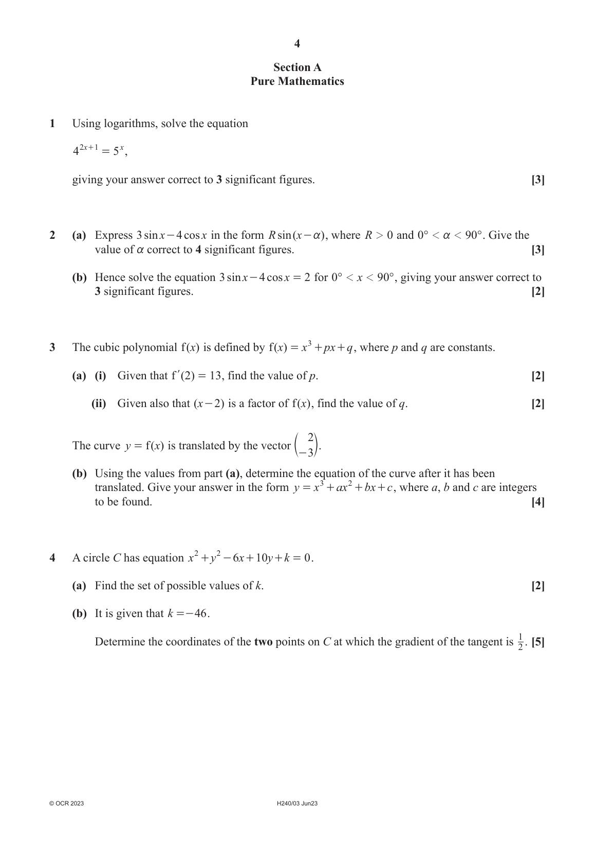 2 (a) Express 3 4 sin c x x - os in the form R x sin( ) -a , where R 2 0 and 0 9 ° ° 1 1 a 0 . Give the