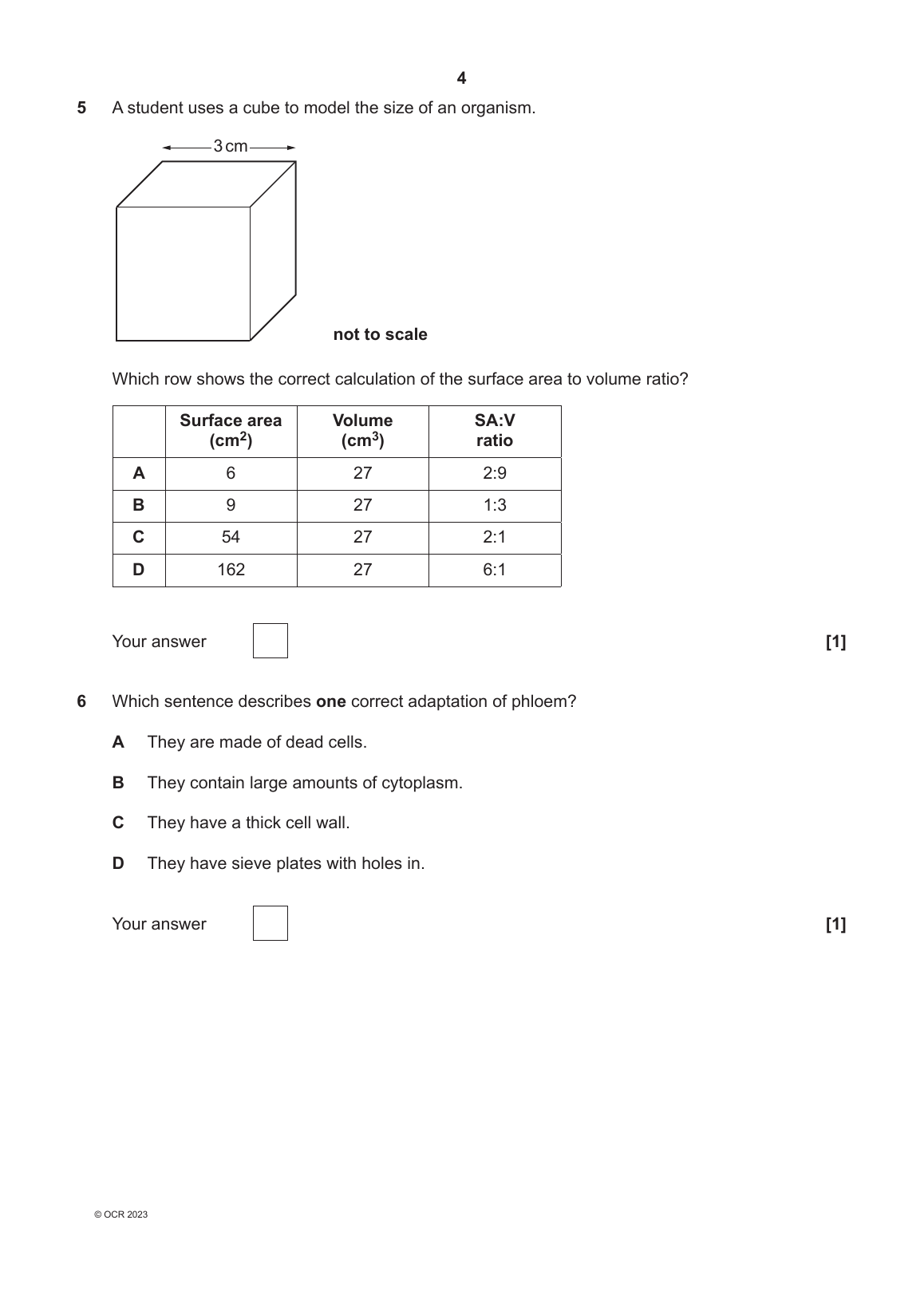 OCR GCSE BIOLOGY A PAPER 4 QUESTION PAPER 2023 (J2...