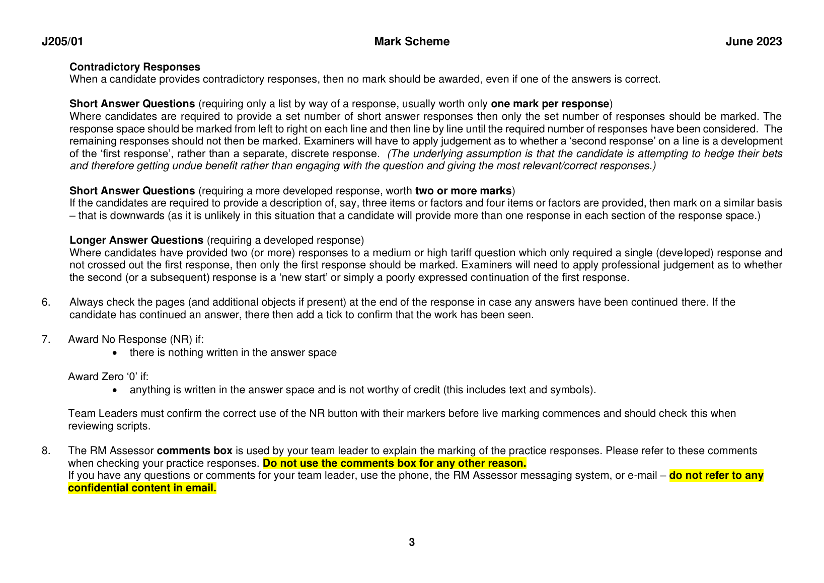 OCR GCSE ECONOMICS PAPER 1 MARK SCHEME 2023 (J205/01: Introduction to Economics)