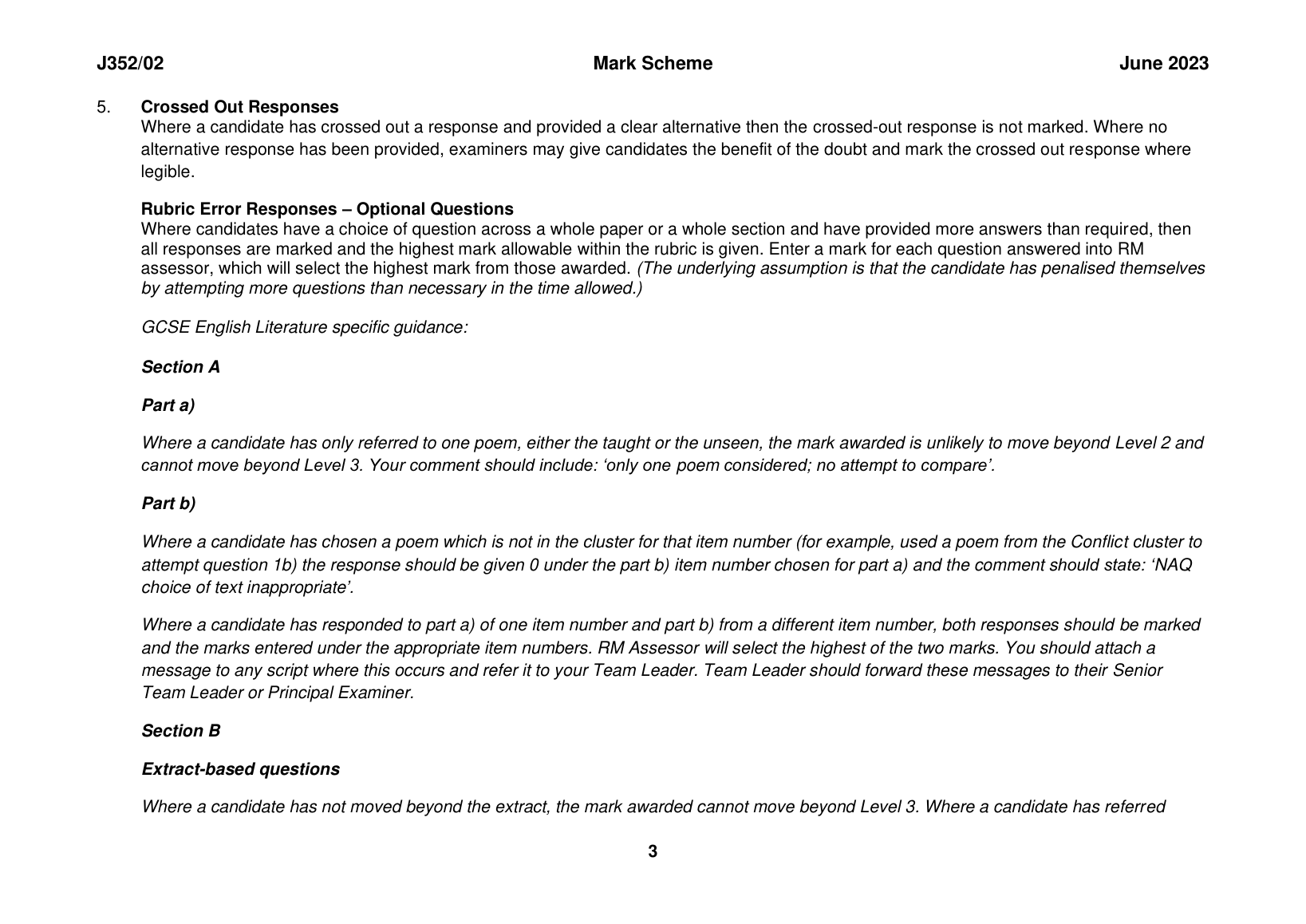 OCR GCSE ENGLISH LITERATURE PAPER 2 MARK SCHEME 2023 (J352/02: Exploring poetry and Shakespeare)