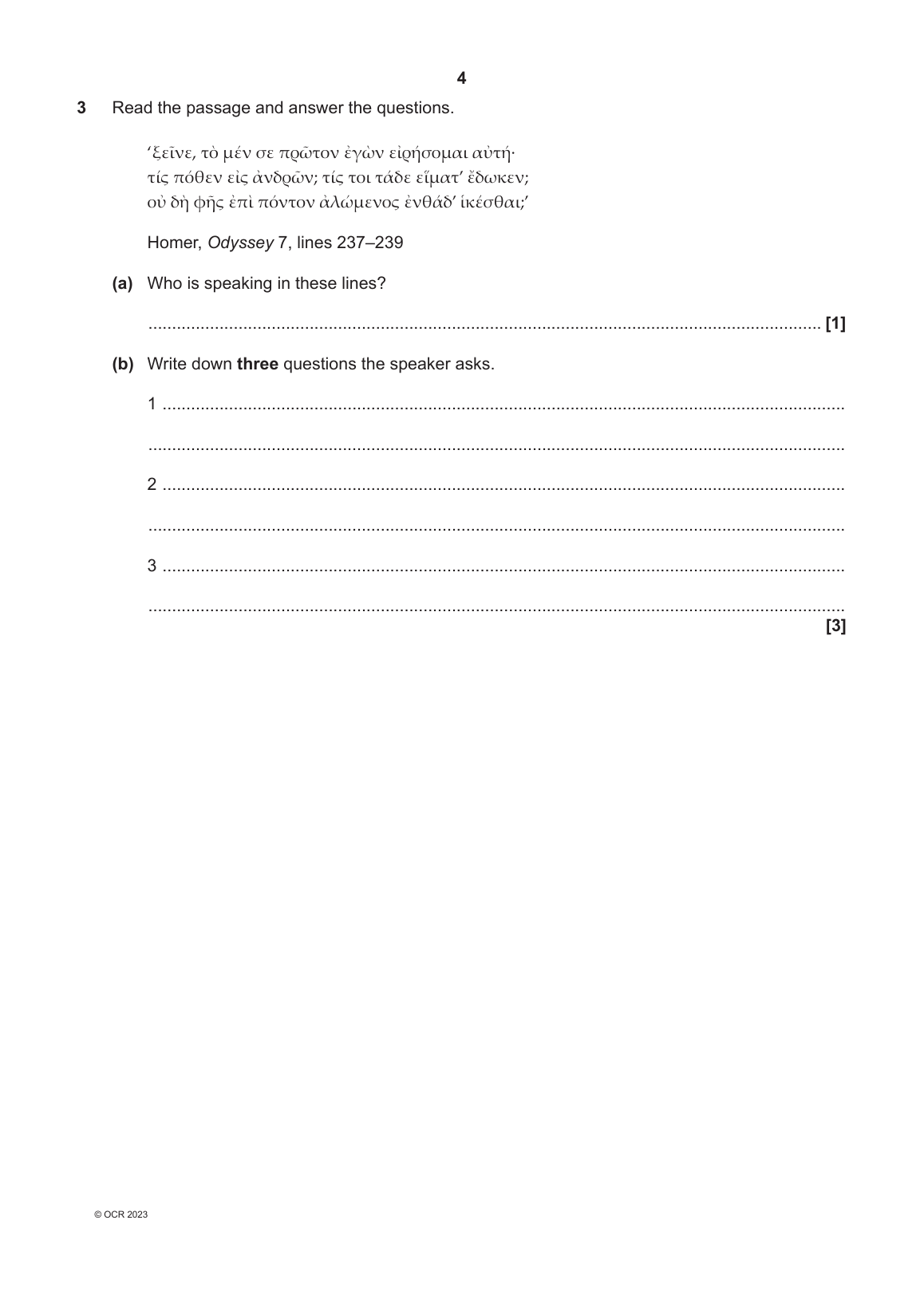 OCR GCSE CLASSICAL GREEK PAPER 4 QUESTION PAPER 2023 (J292/04: Verse Literature A)