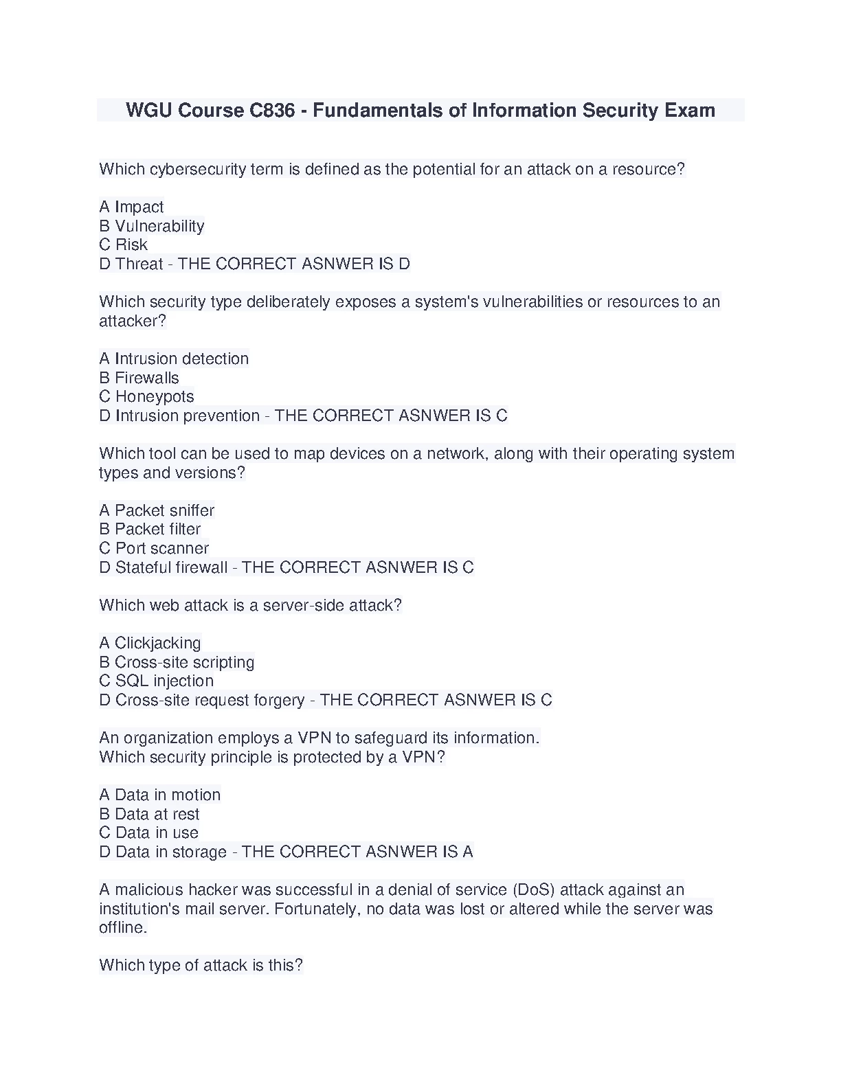 WGU COURSE C836-FUNDAMENTALS OF INFORMATION SECURITY EXAM 2022-2023
