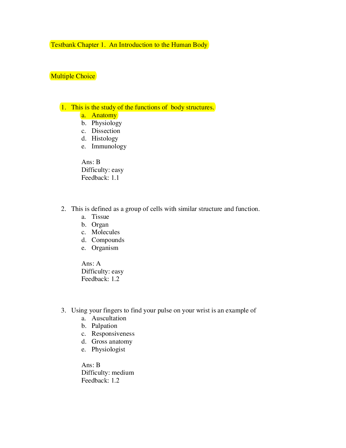 TESTBANK ,   AN INTODUCTION  , HUMAN BODY