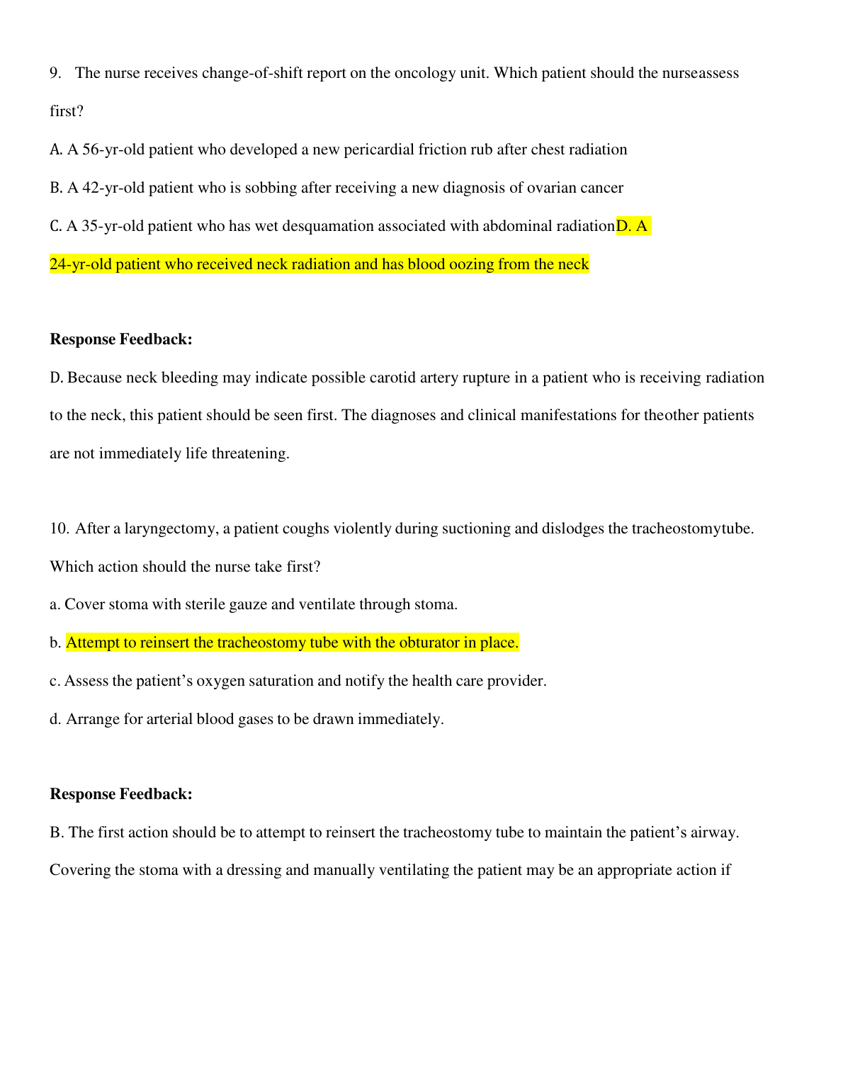 Response Feedback: