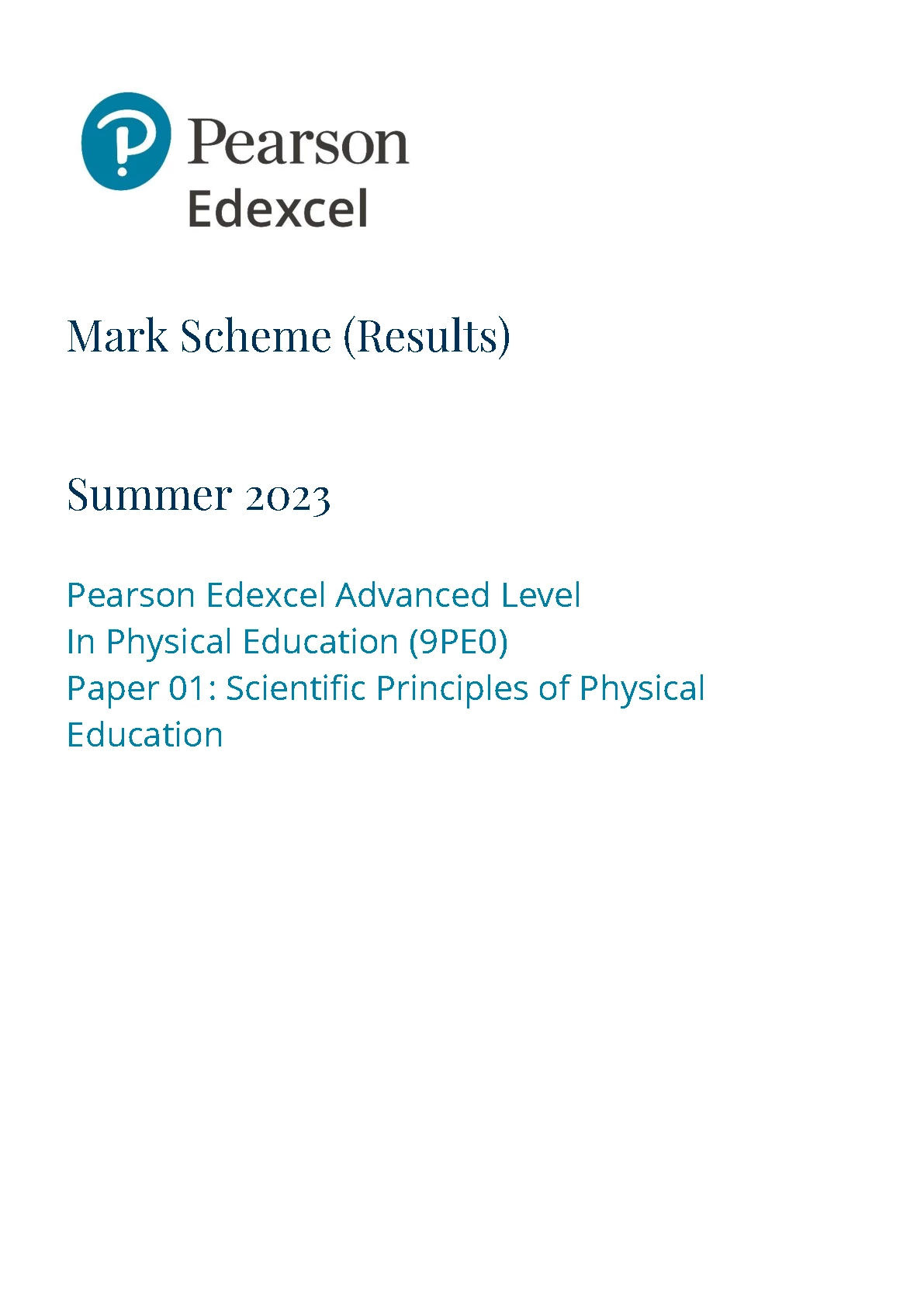 Pearson Edexcel Advanced Level In Physical Education (9PE0) Paper 01: Scientific Principles of Physical Education MARK SCHEME 2023