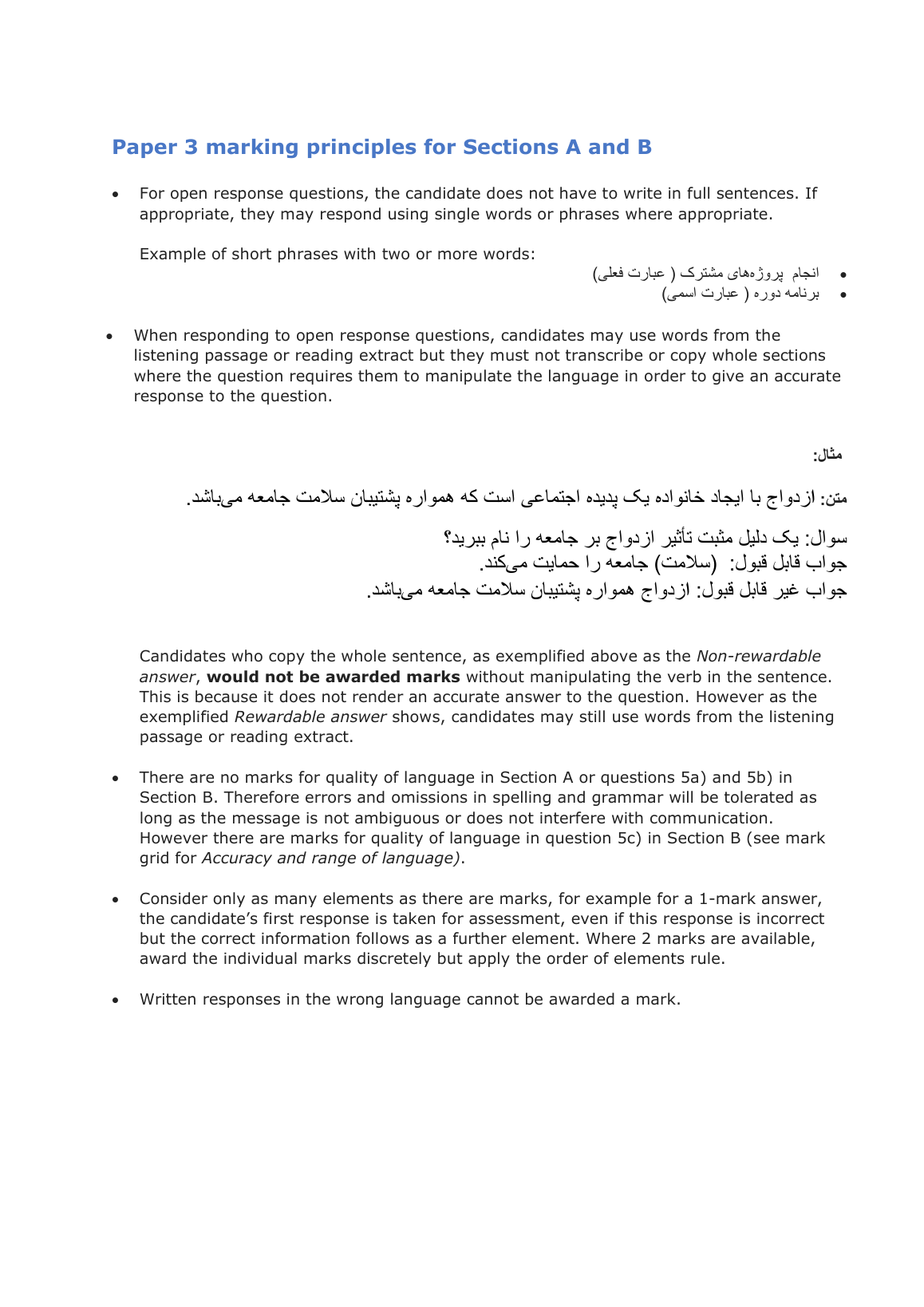 Pearson Edexcel GCE In Persian (9PN0) Paper 03: Listening, reading and writing MARK SCHEME 2023