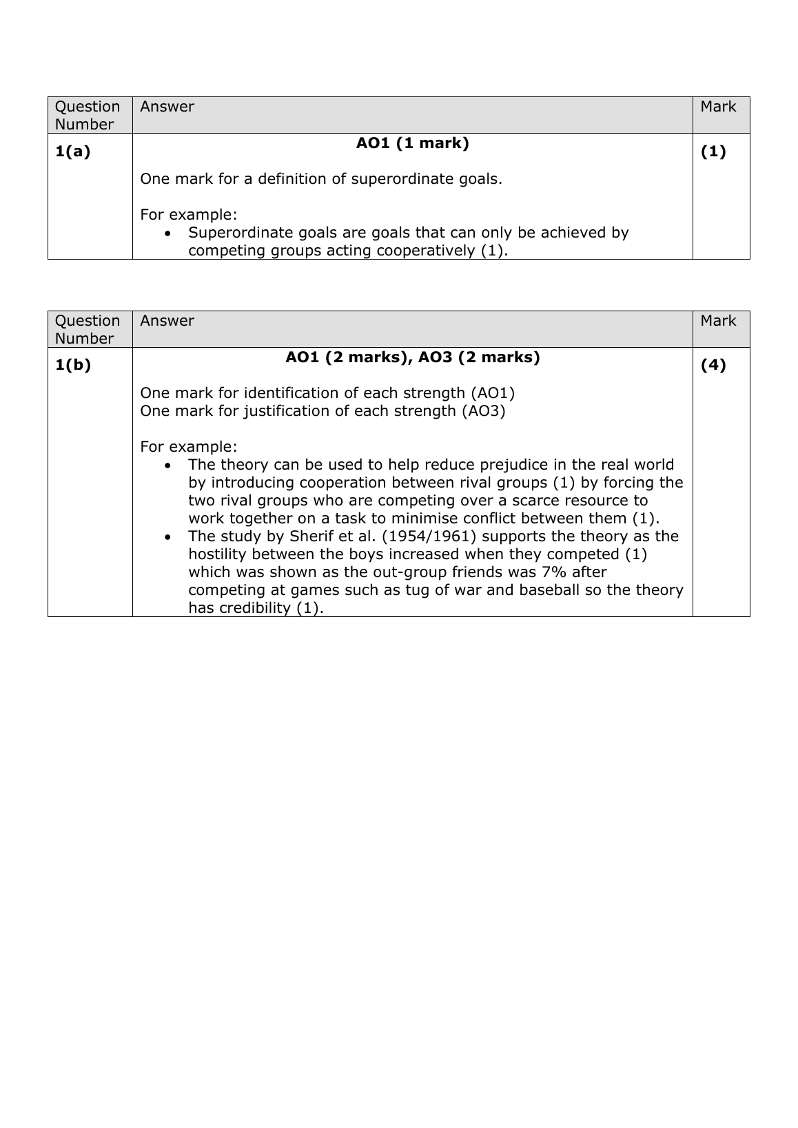 One mark for a definition of superordinate goals.