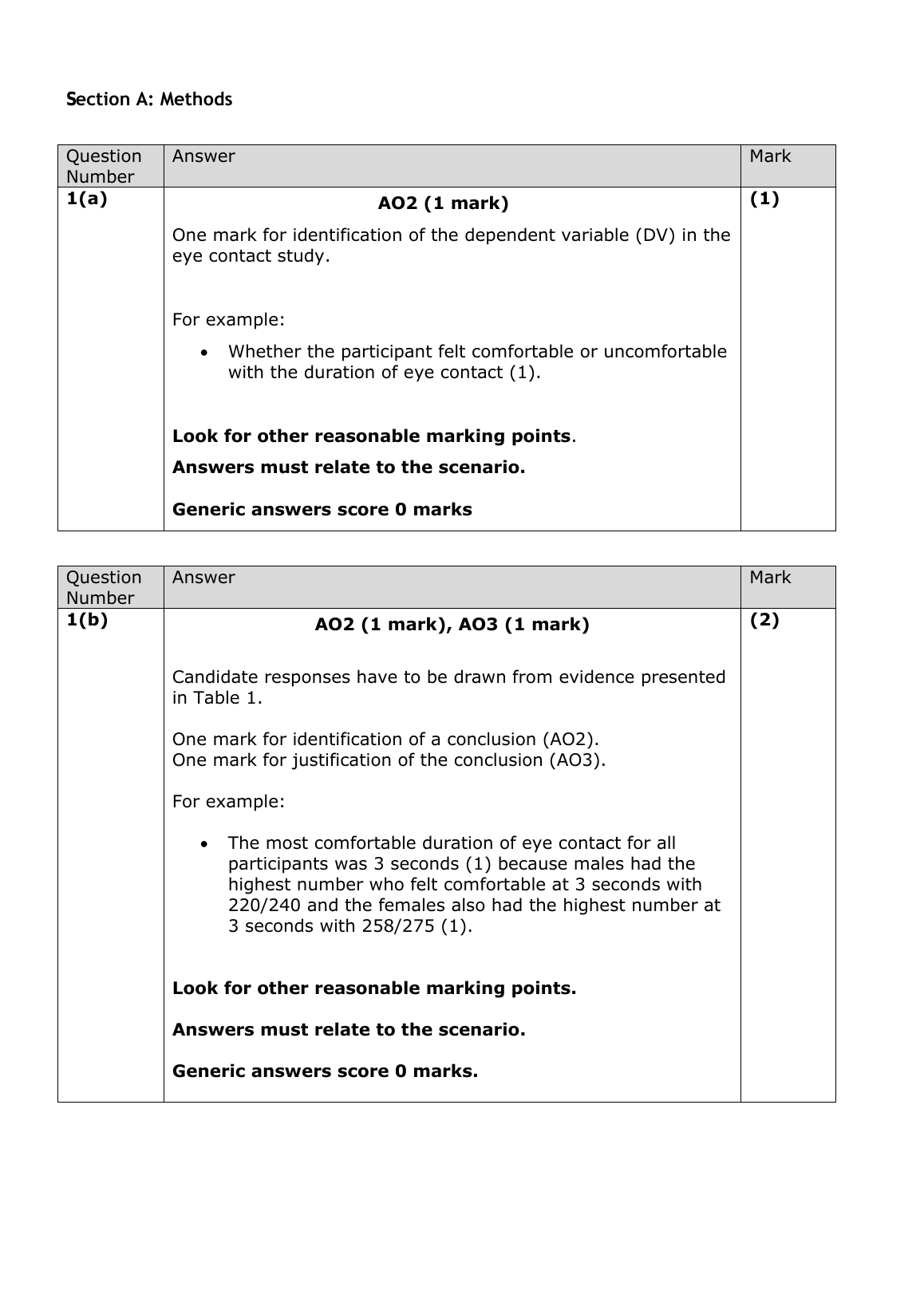 One mark for identification of the dependent variable (DV) in the eye contact study.