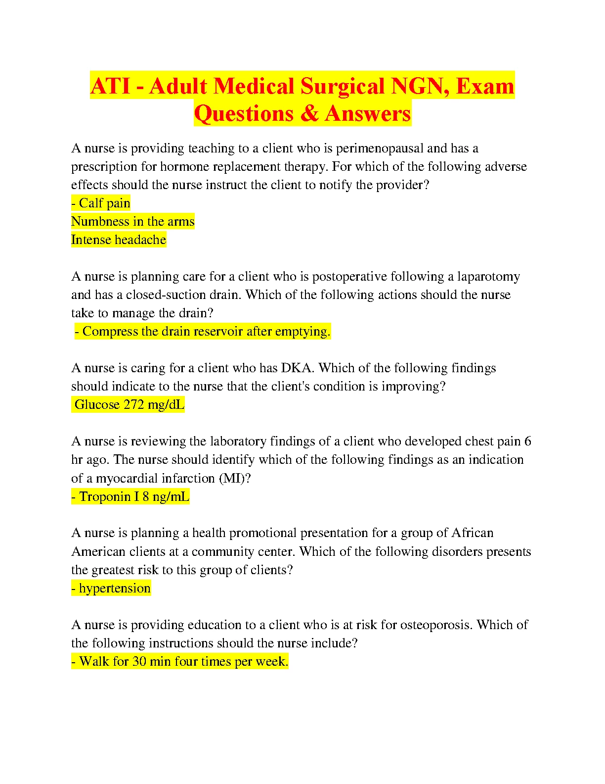 ATI - Adult Medical Surgical NGN, Exam Questions & Answers 2024 UPDATE