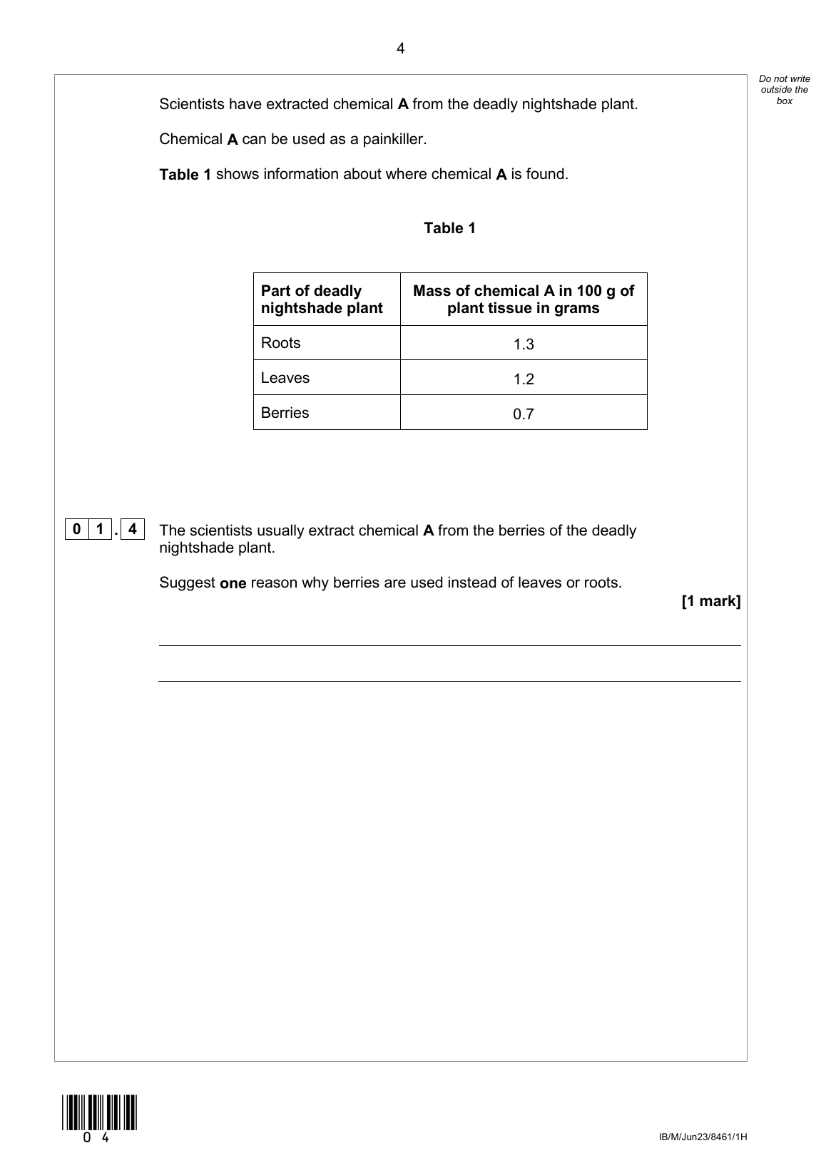 2023 AQA GCSE BIOLOGY (TRIPLE SCIENCE) QUESTION PAPER 1 - HIGHER TIER (8461/1H)