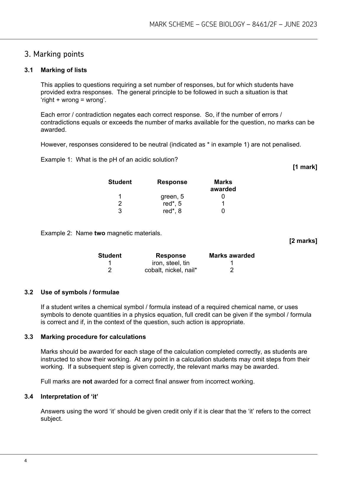 2023 AQA GCSE BIOLOGY (TRIPLE SCIENCE) MARK SCHEME PAPER 2 - FOUNDATION TIER (8461/2F)