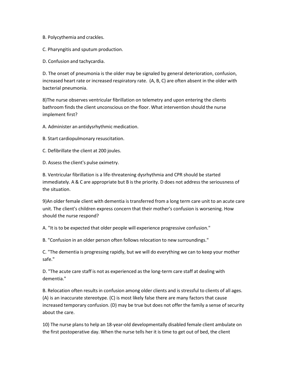 client's nausea. The least invasive intervention is to reposition the client (B), should be