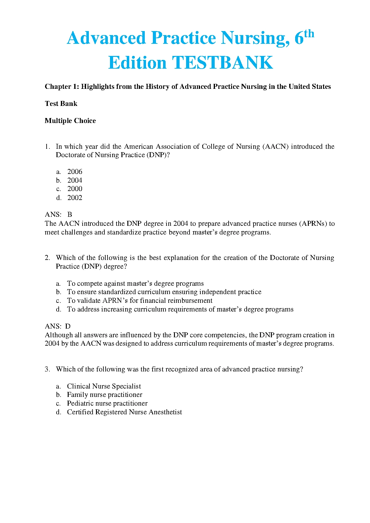 TEST BANK Advanced Practice Nursing, 6th EditionÂ