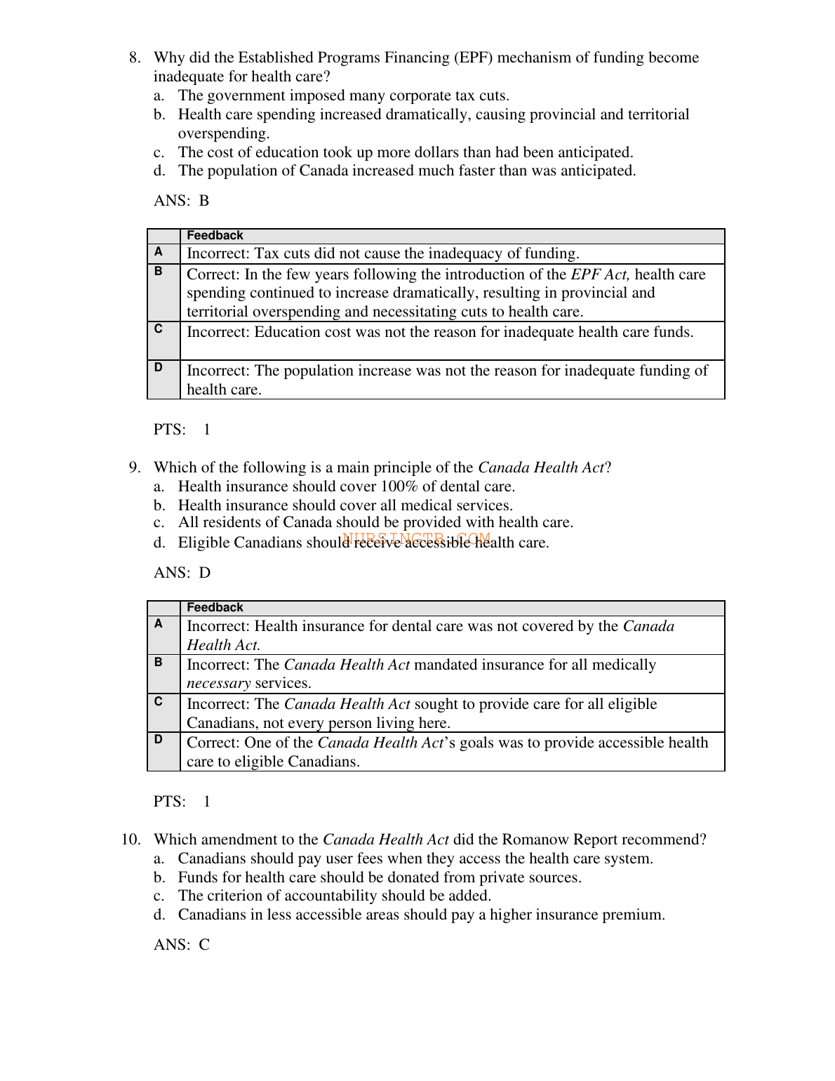 TEST BANK Health and Health Care Delivery in Canada 3rd Edition BY ThompsonÂ