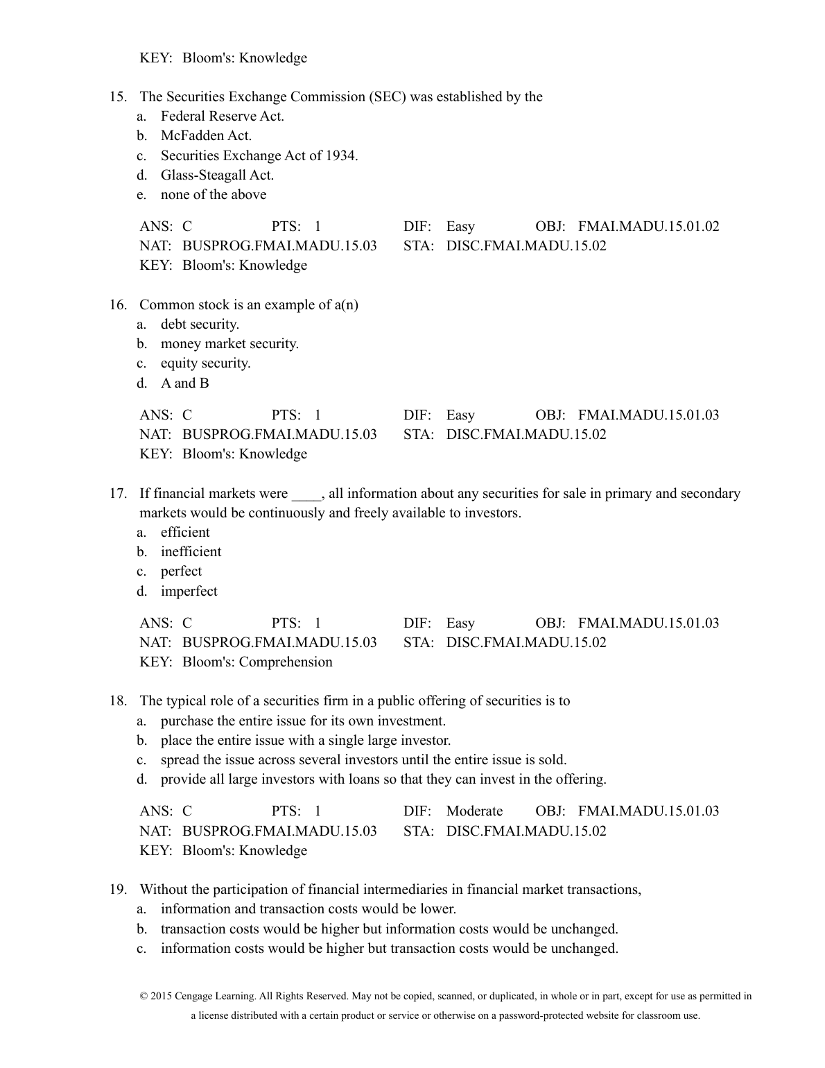 TEST BANK Role of Financial Markets and Institutions