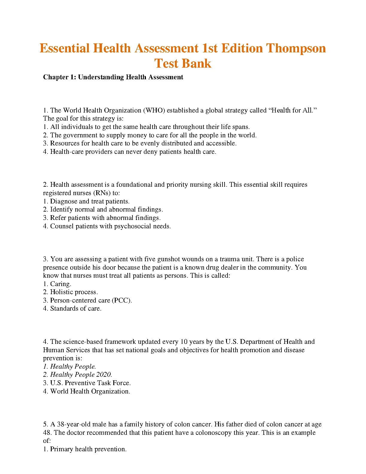 1. The World Health Organization (WHO) established a global strategy called âHealth for All.â The goal for this strategy is: