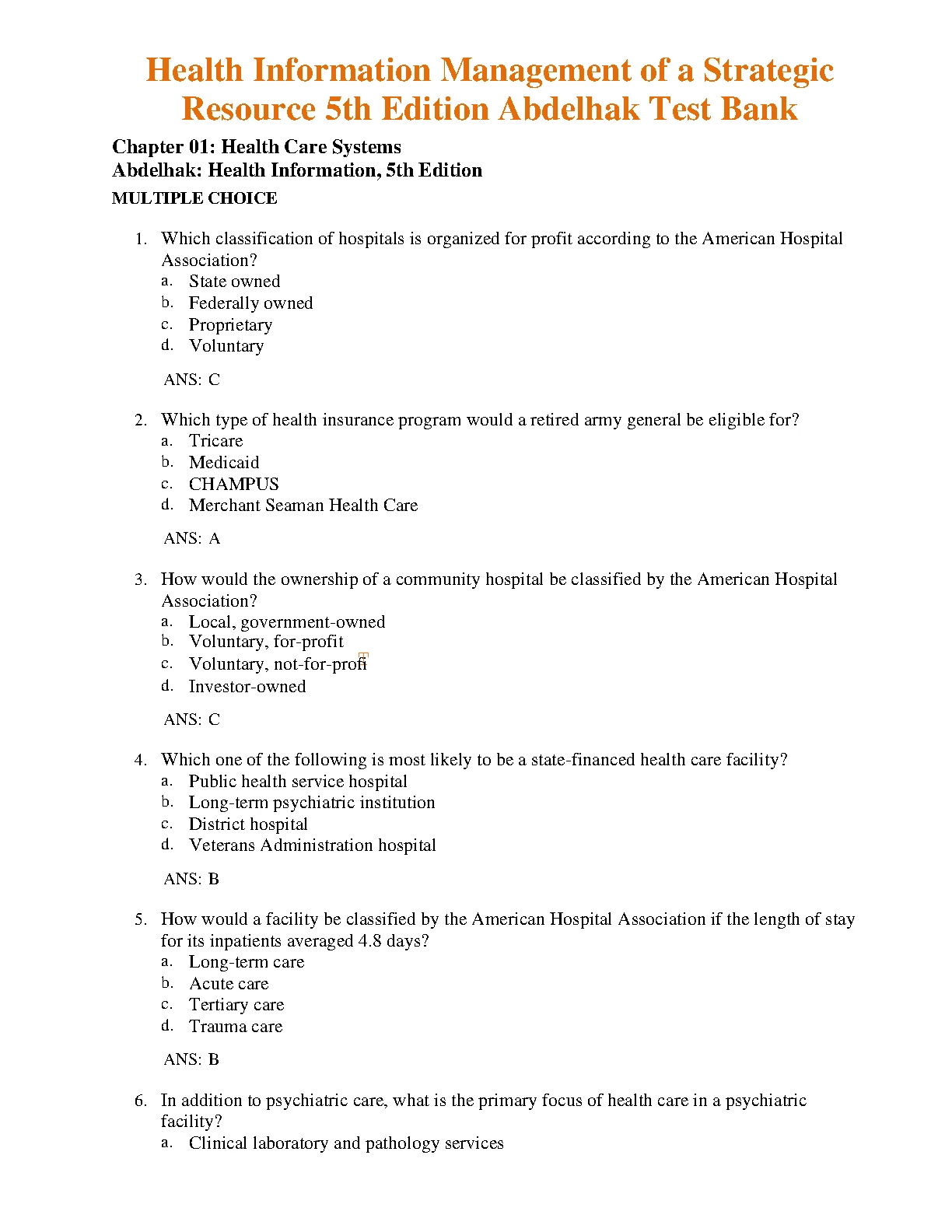 TEST BANK Health Information Management of a Strategic Resource 5th Edition By Abdelhak