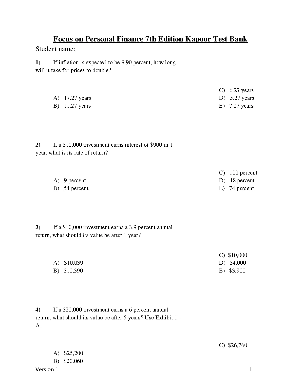 TEST BANK Focus on Personal Finance 7th Edition By Kapoor