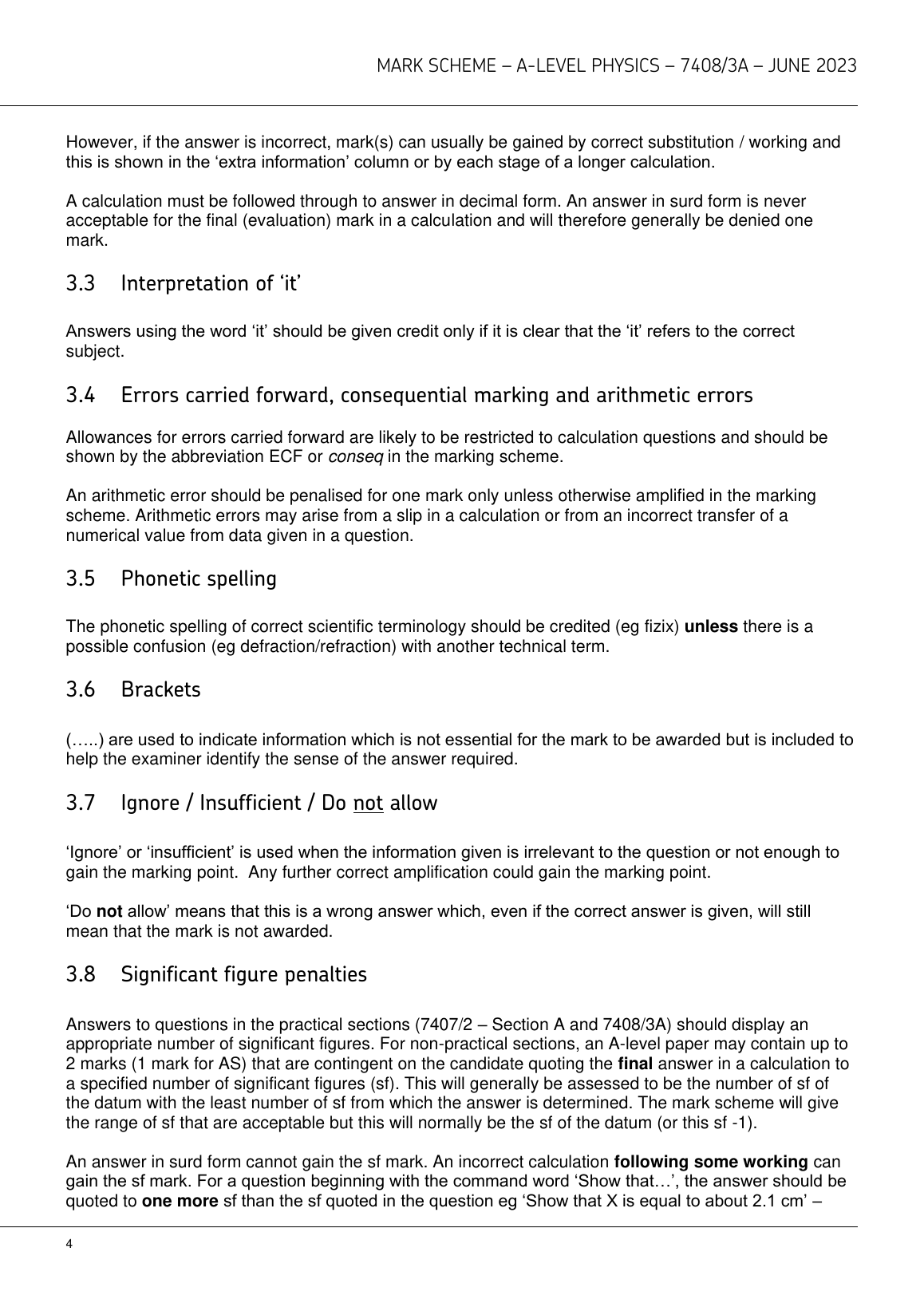2023 AQA A LEVEL PHYSICS PAPER 3A MARK SCHEME (7408/3A: Section A).