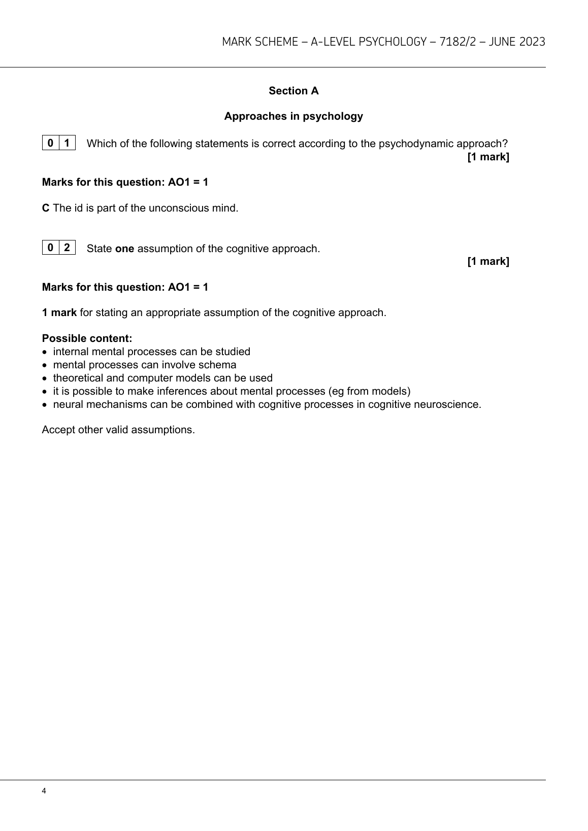 2023 AQA A LEVEL PSYCHOLOGY PAPER 2 MARK SCHEME (7182/2: Psychology in context).