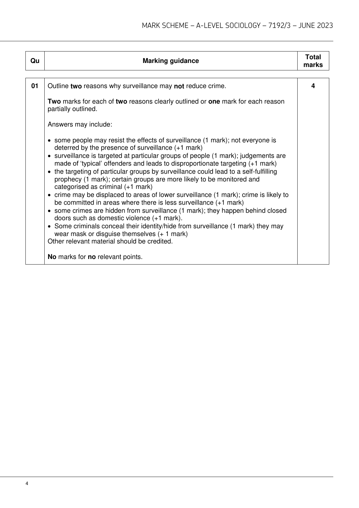 2023 AQA A LEVEL SOCIOLOGY PAPER 3 MARK SCHEME (7192/3: Crime and Deviance with Theory and Methods).