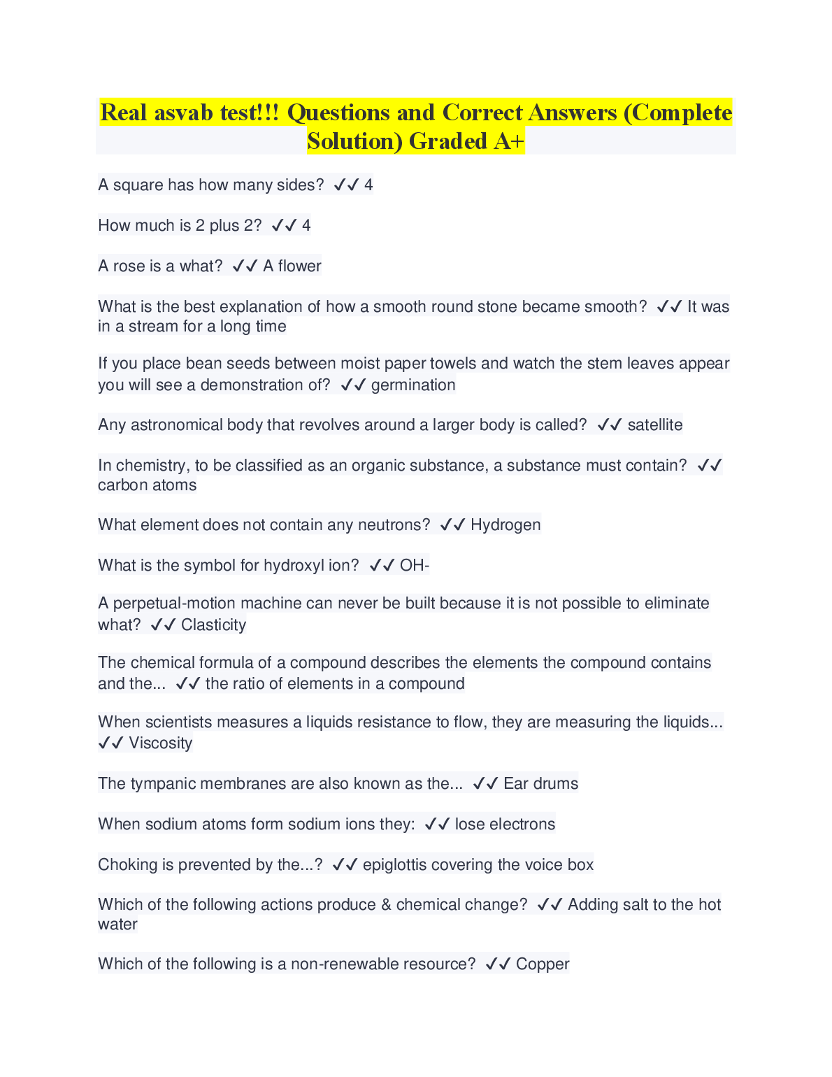 Real ASVAB test!!! Questions and Correct Answers (Complete Solution) Graded A+