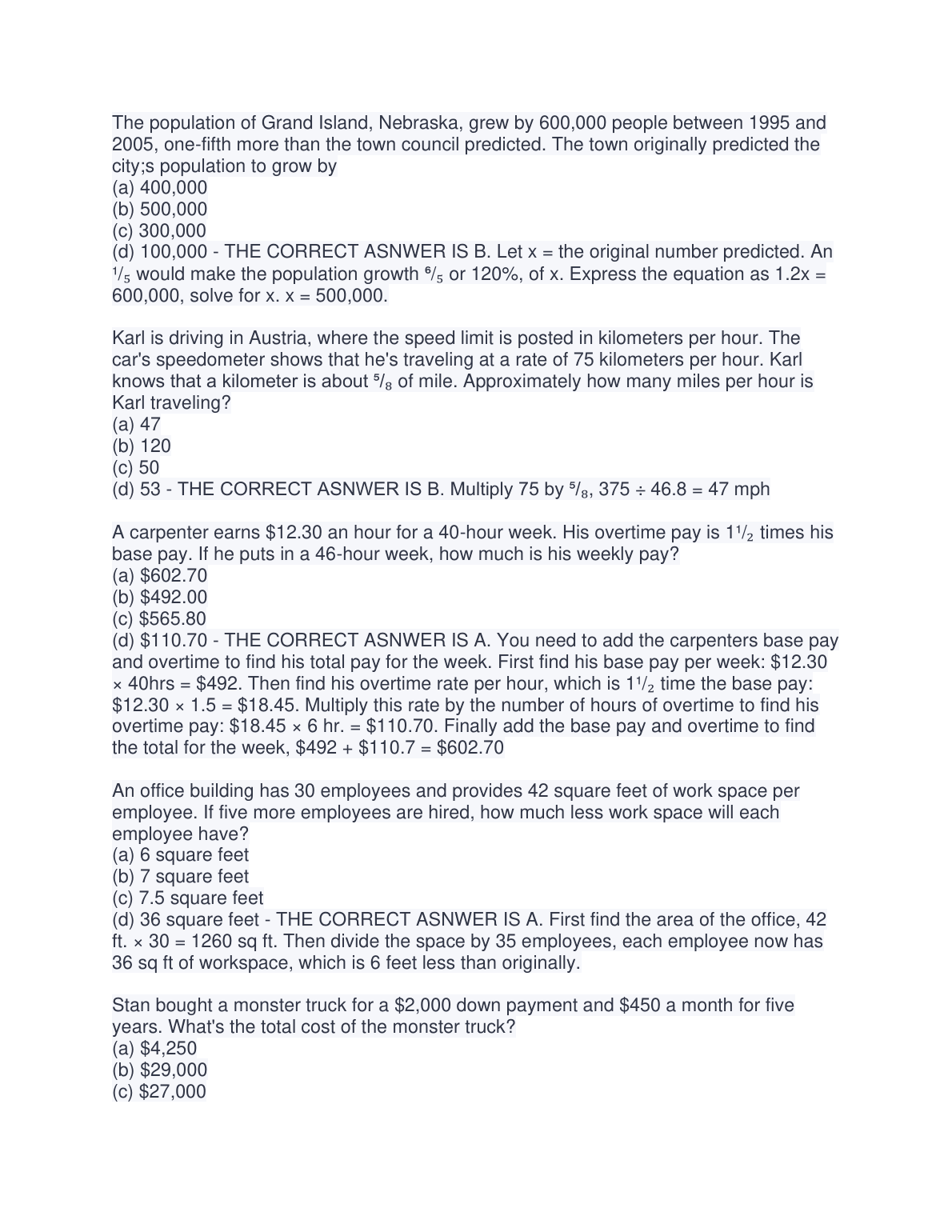 ASVAB: Arithmetic Reasoning Question and Answer