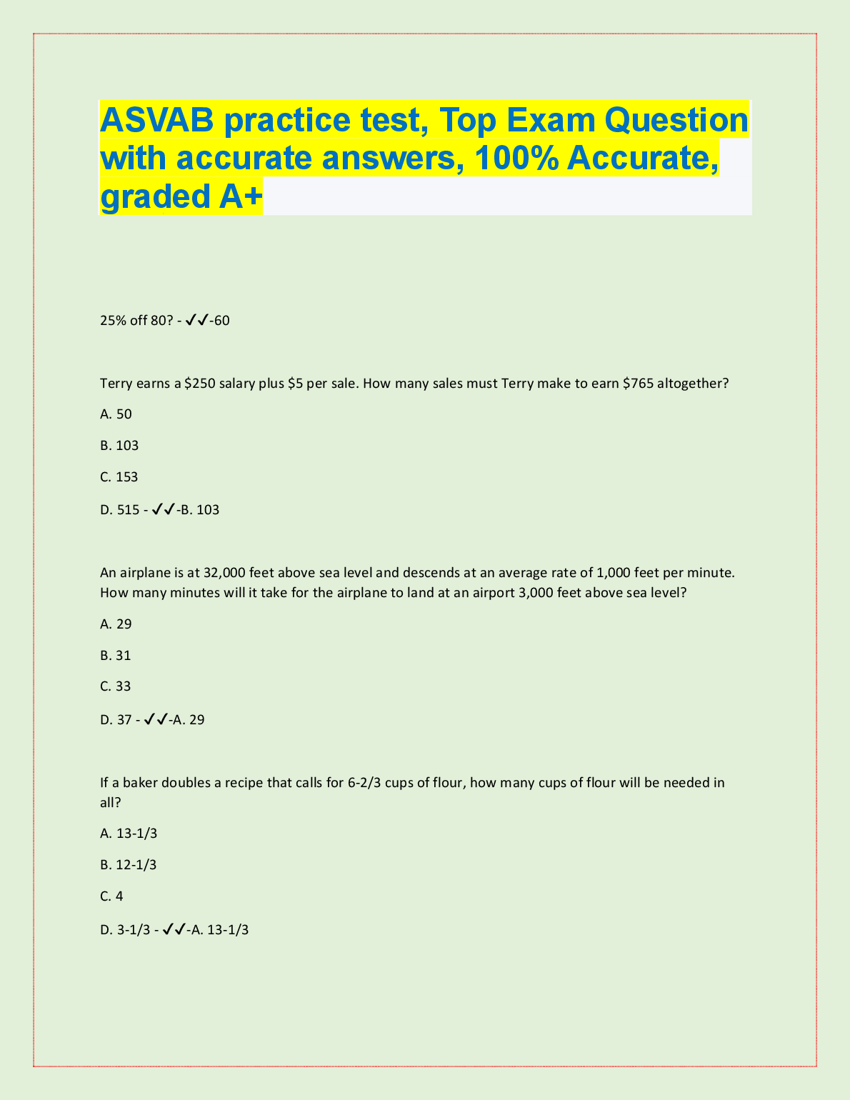 ASVAB practice test, Top Exam Question with accurate answers, 100% Accurate, graded A