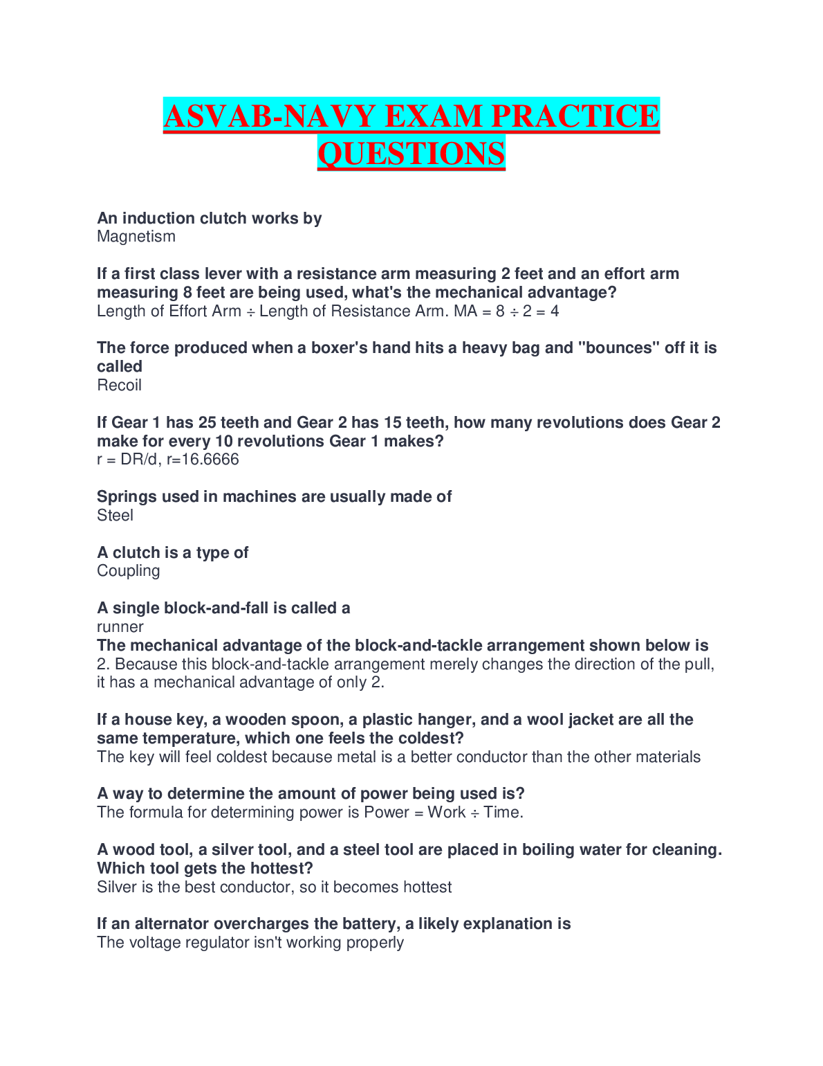 NAVY ASVAB EXAM PRACTICE QUESTIONS