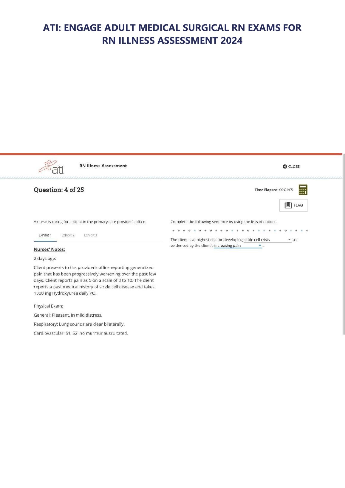 ATI: ENGAGE ADULT MEDICAL SURGICAL RN EXAMS FOR RN ILLNESS ASSESSMENT 2024