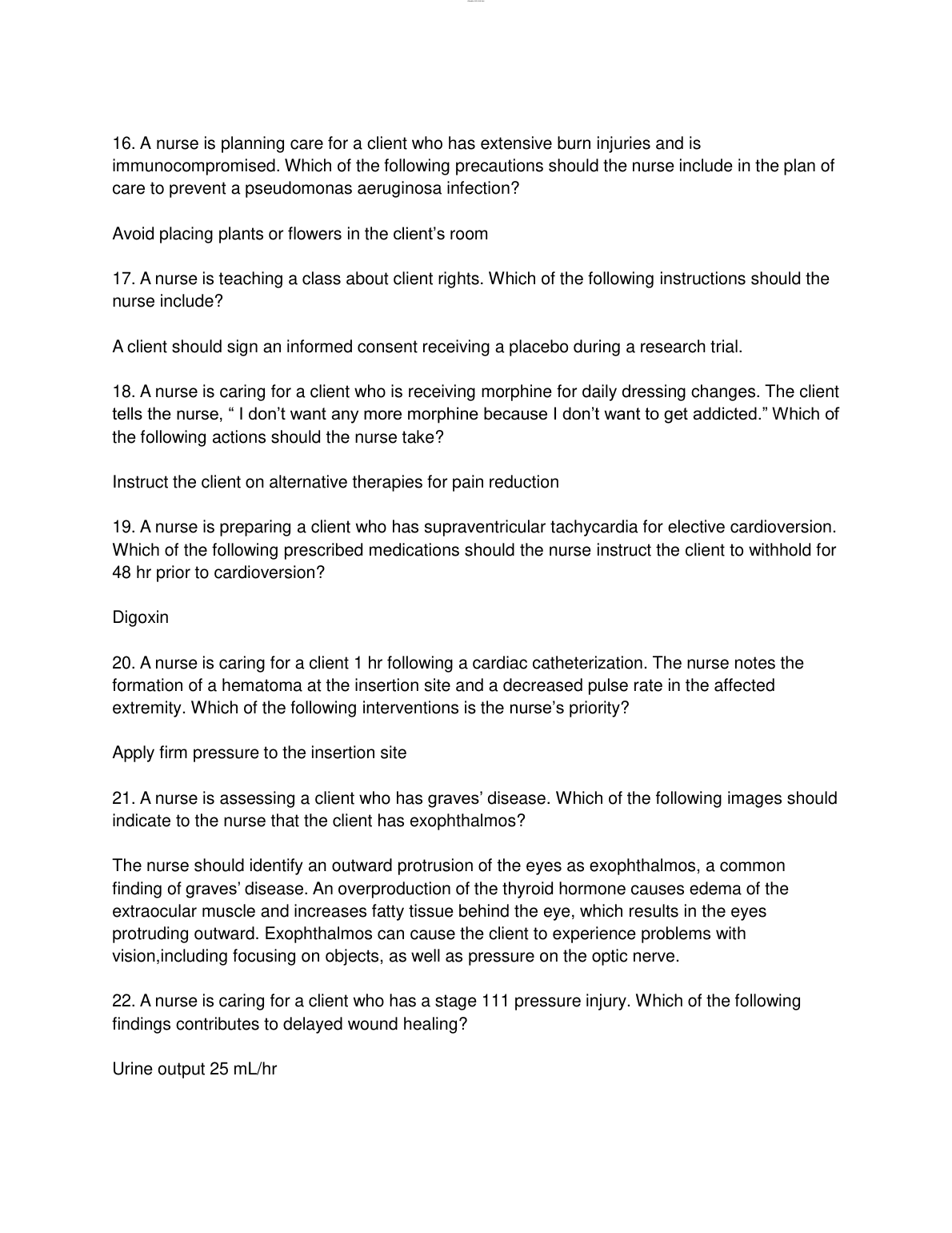 3. A nurse is caring for a group of clients. The nurse should plan to make a referral to physical