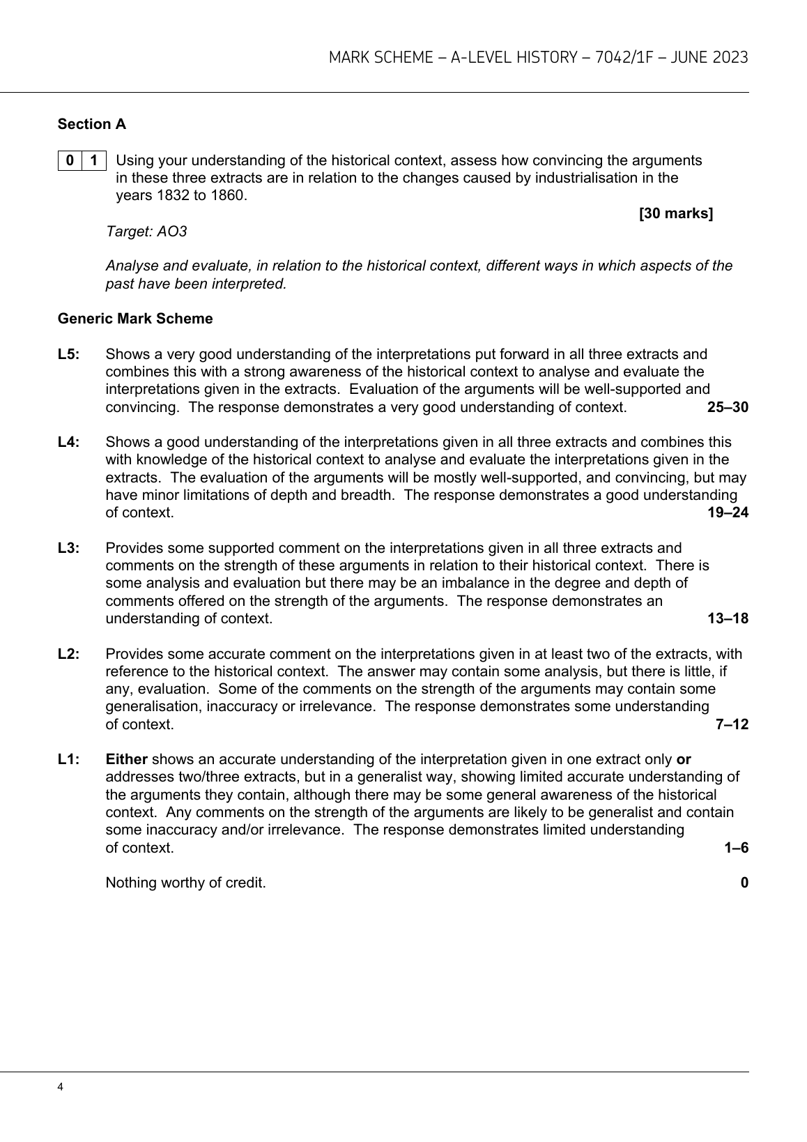 2023 AQA A LEVEL HISTORY PAPER 1FMARK SCHEME (7042/1F Component 1F Industrialisation and the people: Britain, c1783-1885).