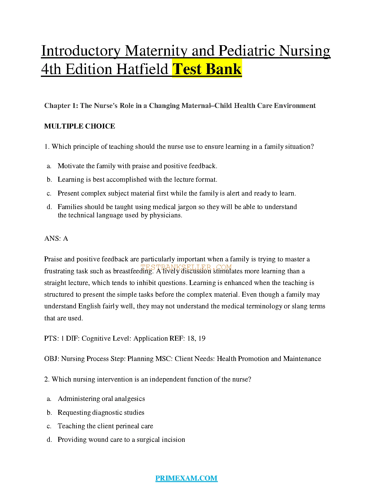 Test Bank for Introductory Maternity and Pedriatric Nursing 4th Edition by Hatfield. DOWNLOAD on www.leakedexams.com INSTANTLY.