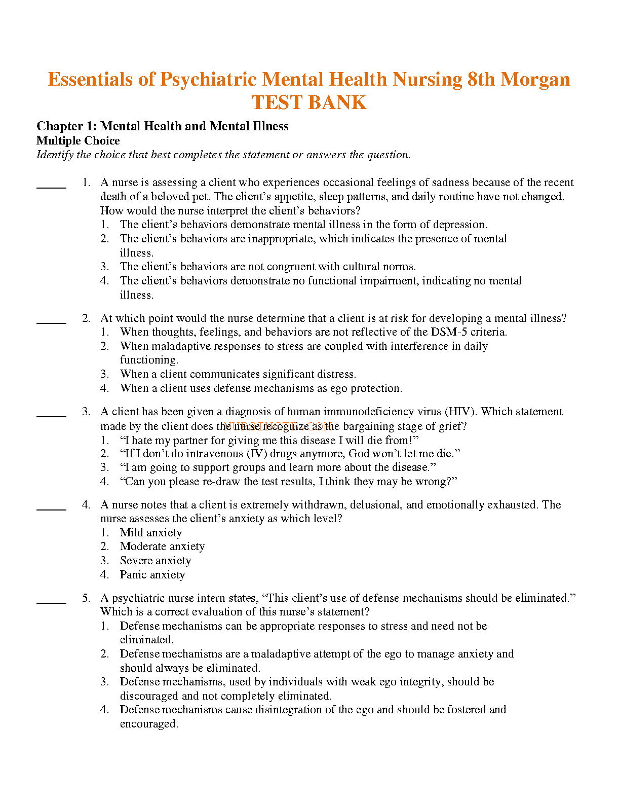 Essentials of Psychiatric Mental Health Nursing 8th Morgan TEST BANK. DOWNLOAD on www.leakedexams.com INSTANTLY.