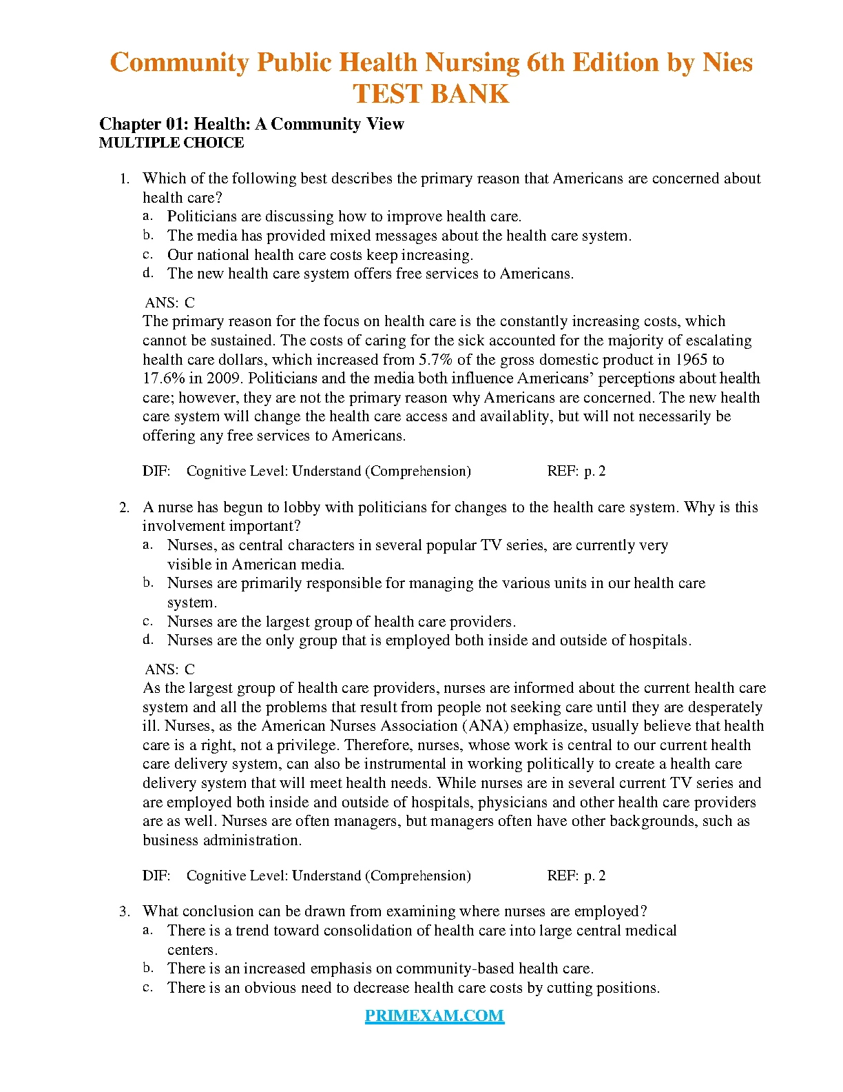 Community Public Health Nursing 6th Edition by Nies TEST BANK. DOWNLOAD on www.leakedexams.com INSTANTLY.