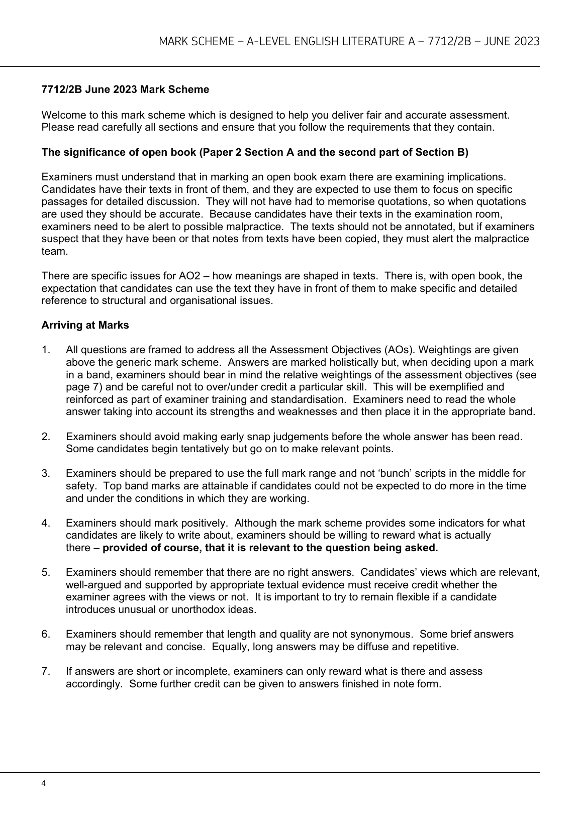 AQA A LEVEL ENGLISH LITERATURE A MARK SCHEME PAPER 2B 2023 [7712/2B]