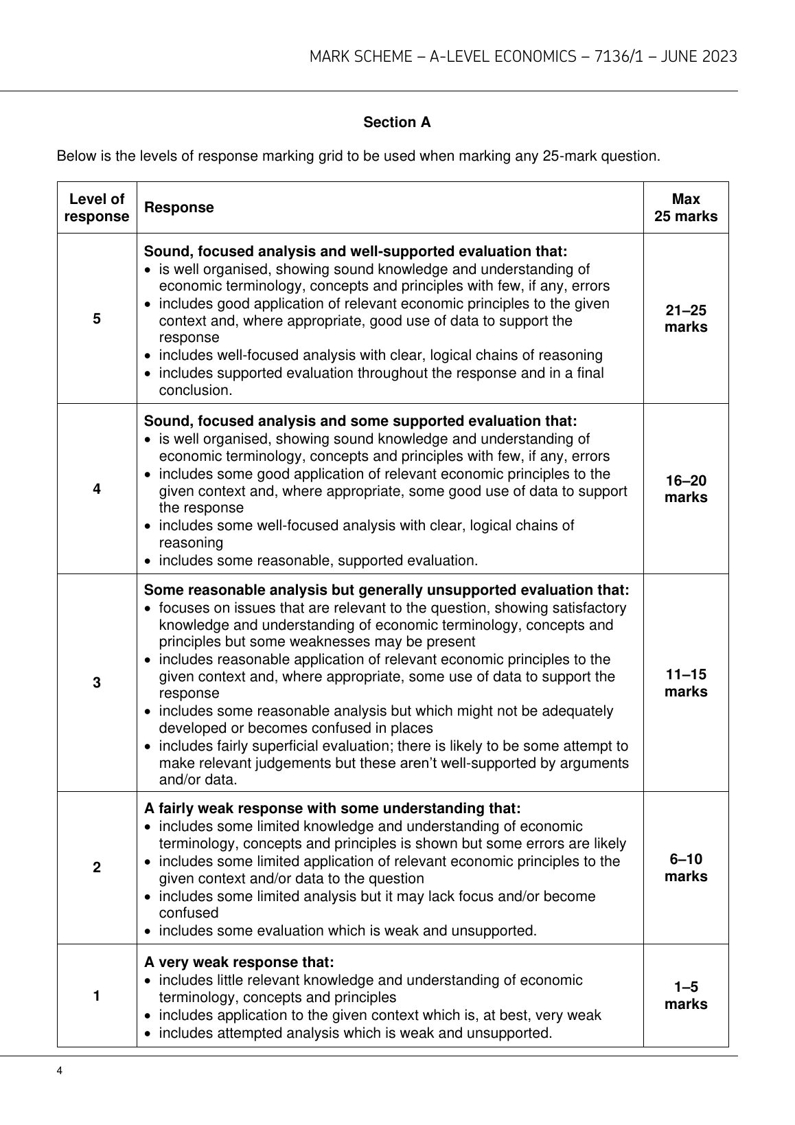AQA A LEVEL ECONOMICS PAPER 1 MARK SCHEME 2023 (7136/1:Markets and Market Failure)