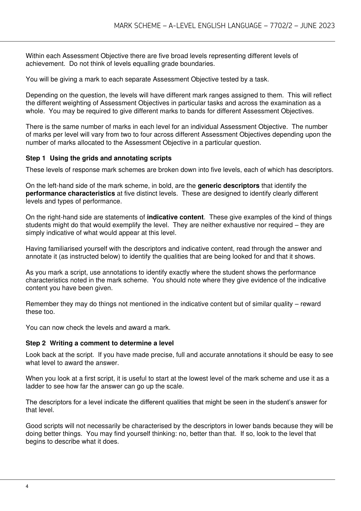 2023 AQA A LEVEL ENGLISH LANGUAGE MARK SCHEME PAPER 2(Language diversity and change)