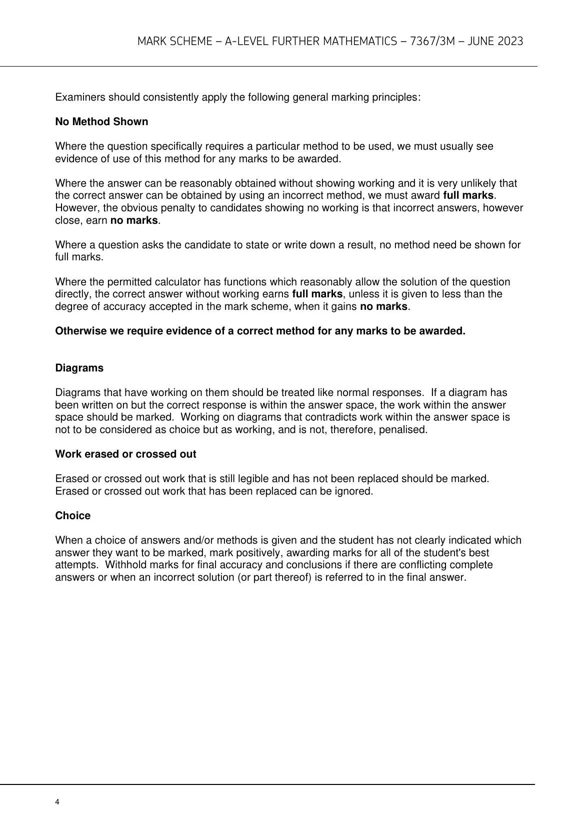 AQA A LEVEL FURTHER MATHEMATICS MARK SCHEME PAPER 3M 2023 [7367/3M]