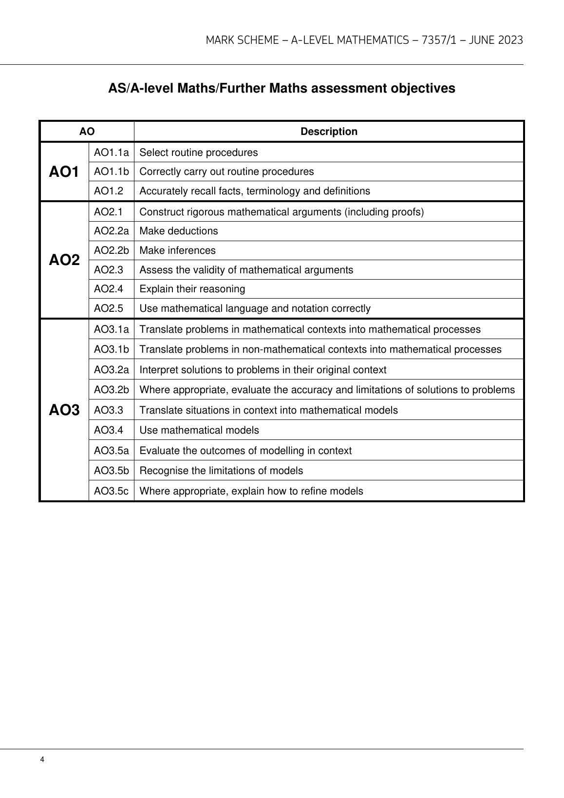 2023 AQA A LEVEL MATHEMATICS PAPER 1 MARK SCHEME (7357/1).