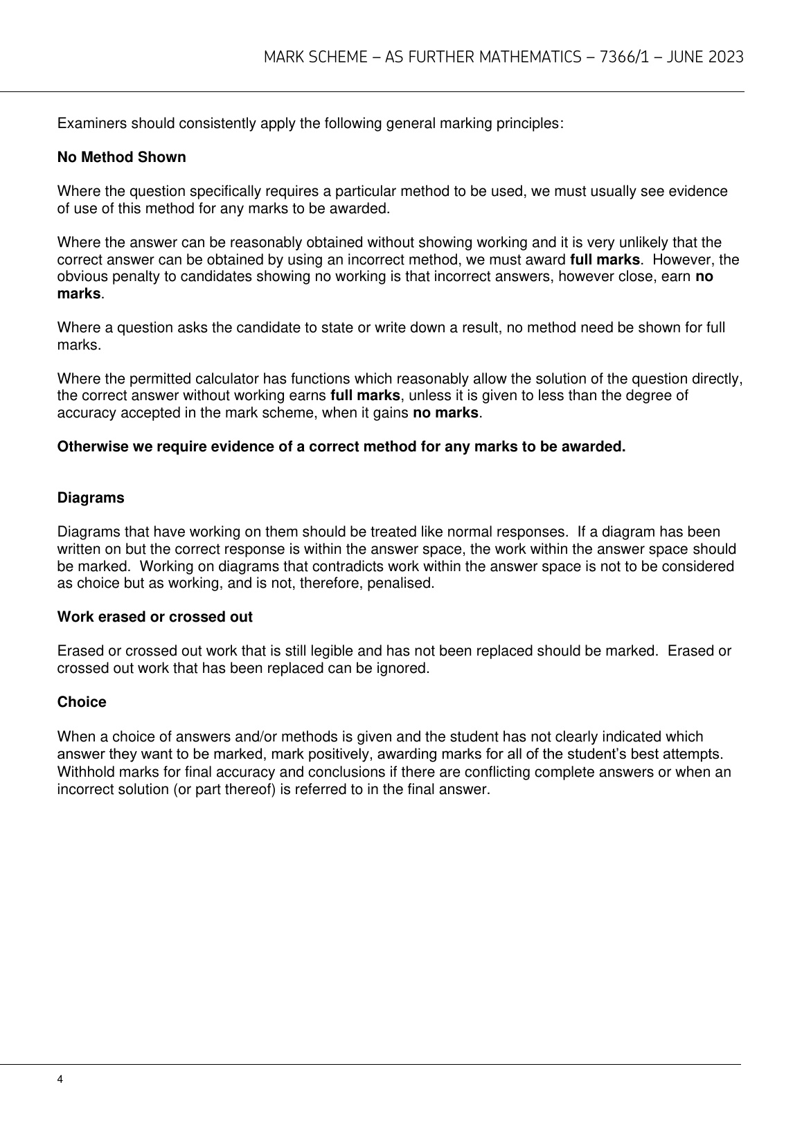 2023 AQA AS FURTHER MATHEMATICS PAPER 1 MARK SCHEME (7366/1).