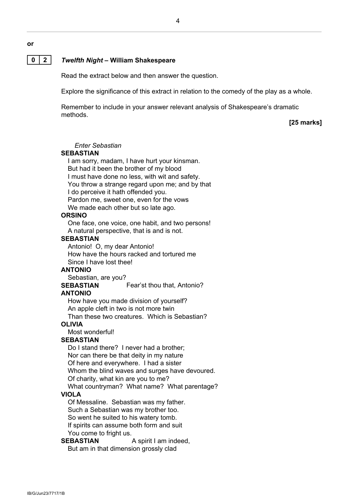 2023 AQA A LEVEL ENGLISH LITERATURE B PAPER 1B QUESTION PAPER (7717/1B: Literary genres: Aspects of comedy).