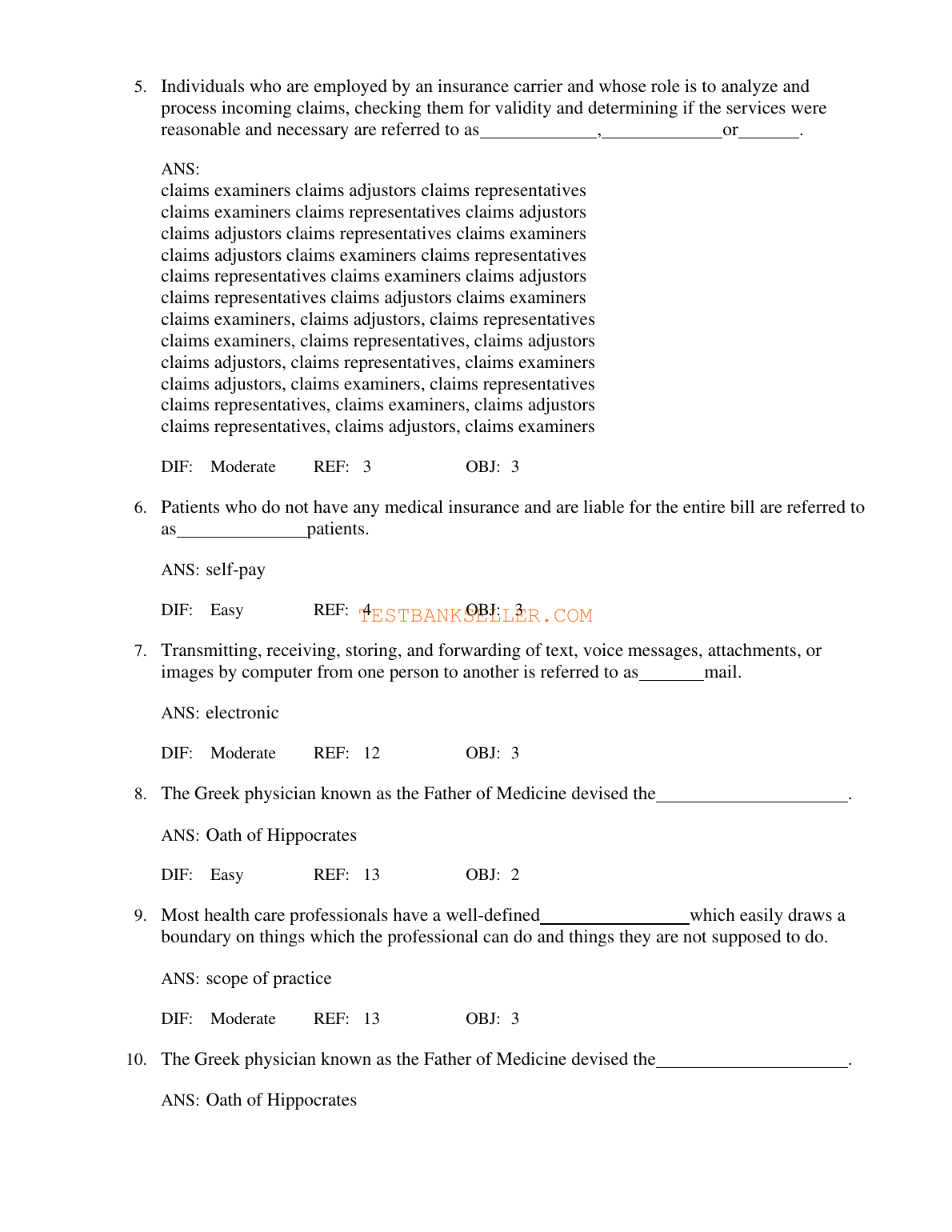 Test Bank For Fordney’s Medical Insurance, 15th Edition BY Smith. DOWNLOAD ON www.Leakedexams.com INSTANTLY.