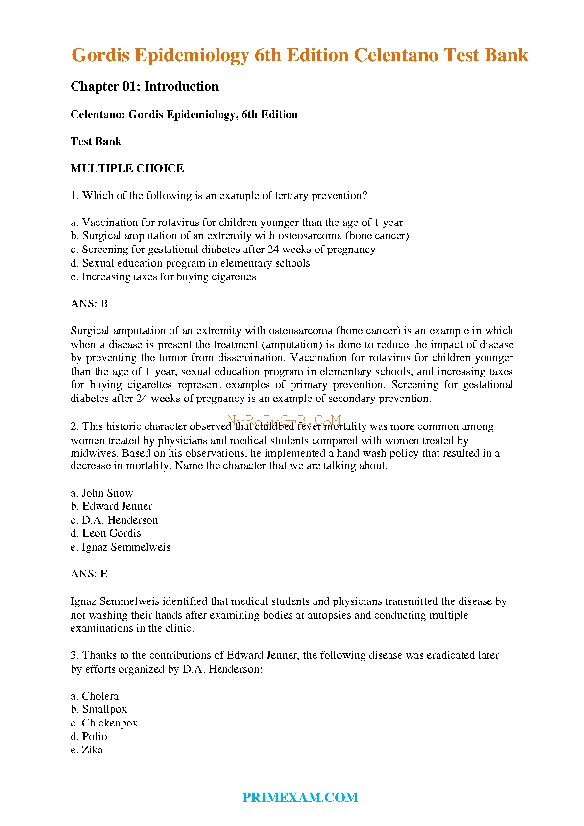 TEST BANK: Gordis Epidemiology, 6th Edition BY Celentano