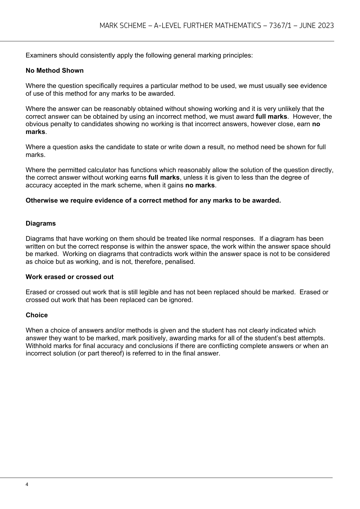 AQA A LEVEL FUTHER MATHEMATICS PAPER 1 MARK SCHEME 2023 (7366/1)