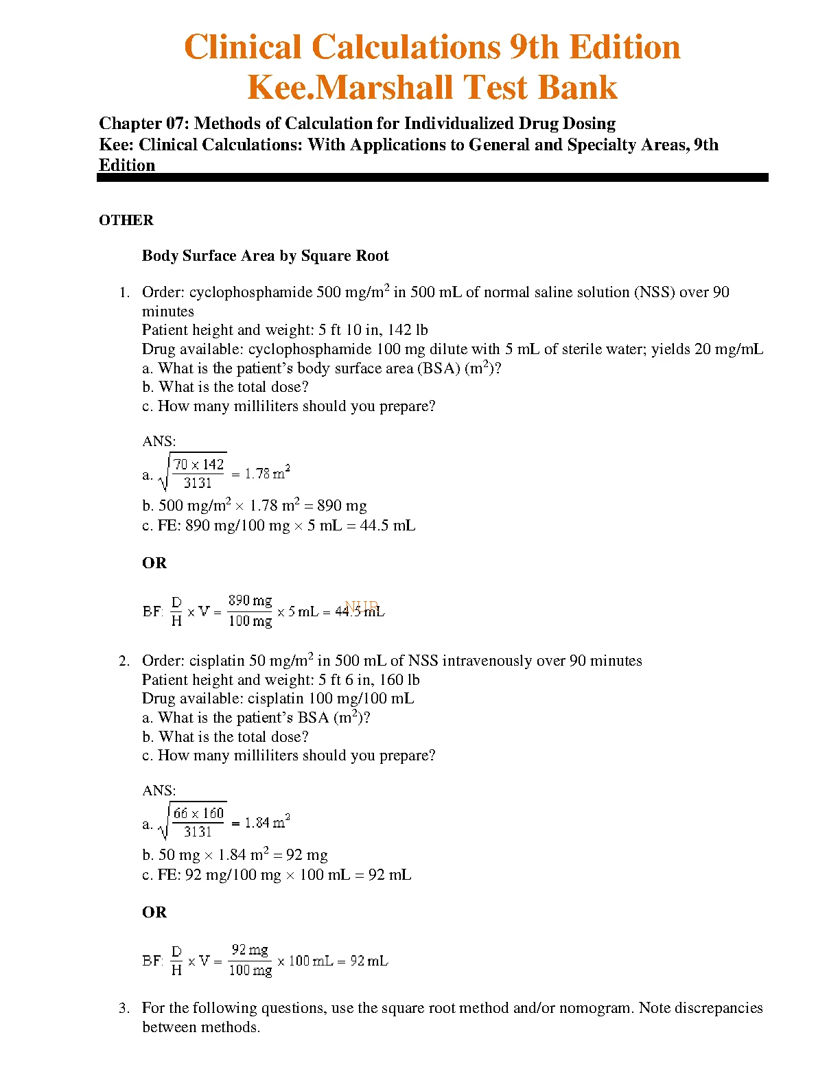Clinical Calculations 9th Edition Kee Marshall Test Bank . DOWNLOAD on www.leakedexams.com INSTANTLY.