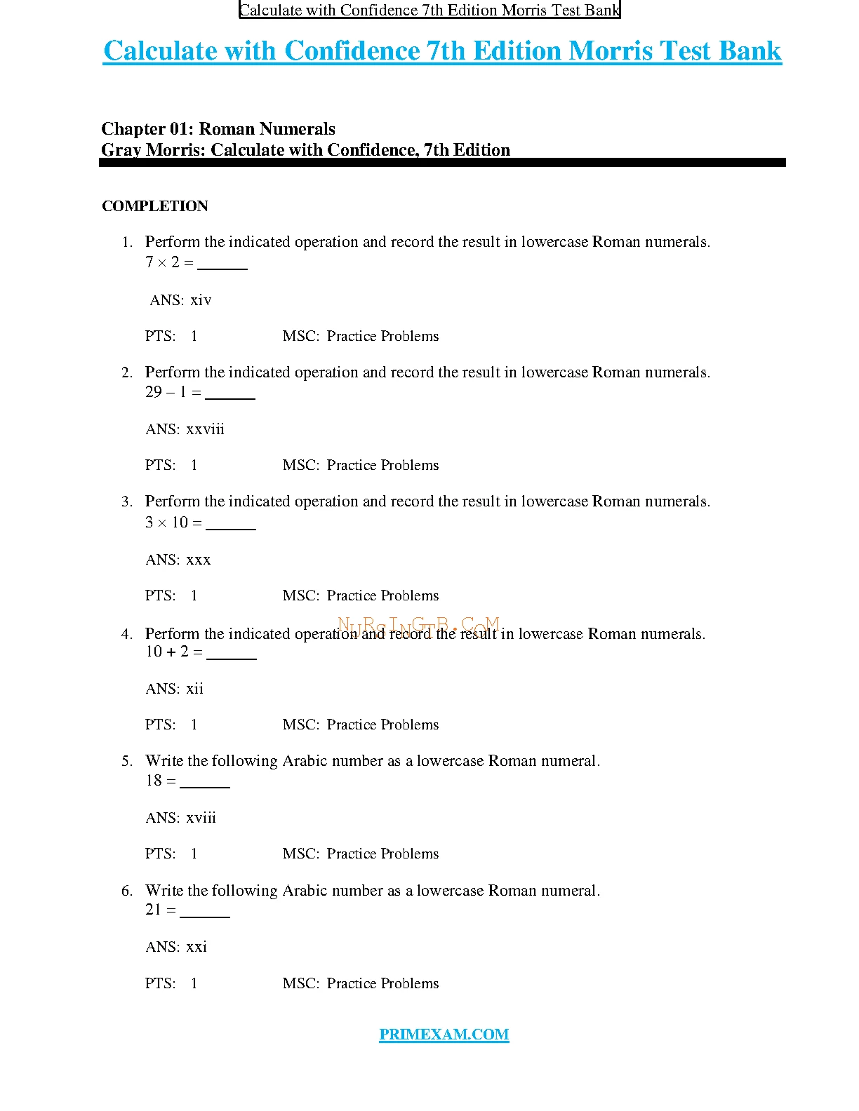 Calculate with Confidence 7th Edition Morris Test Bank. DOWNLOAD on www.leakedexams.com INSTANTLY.