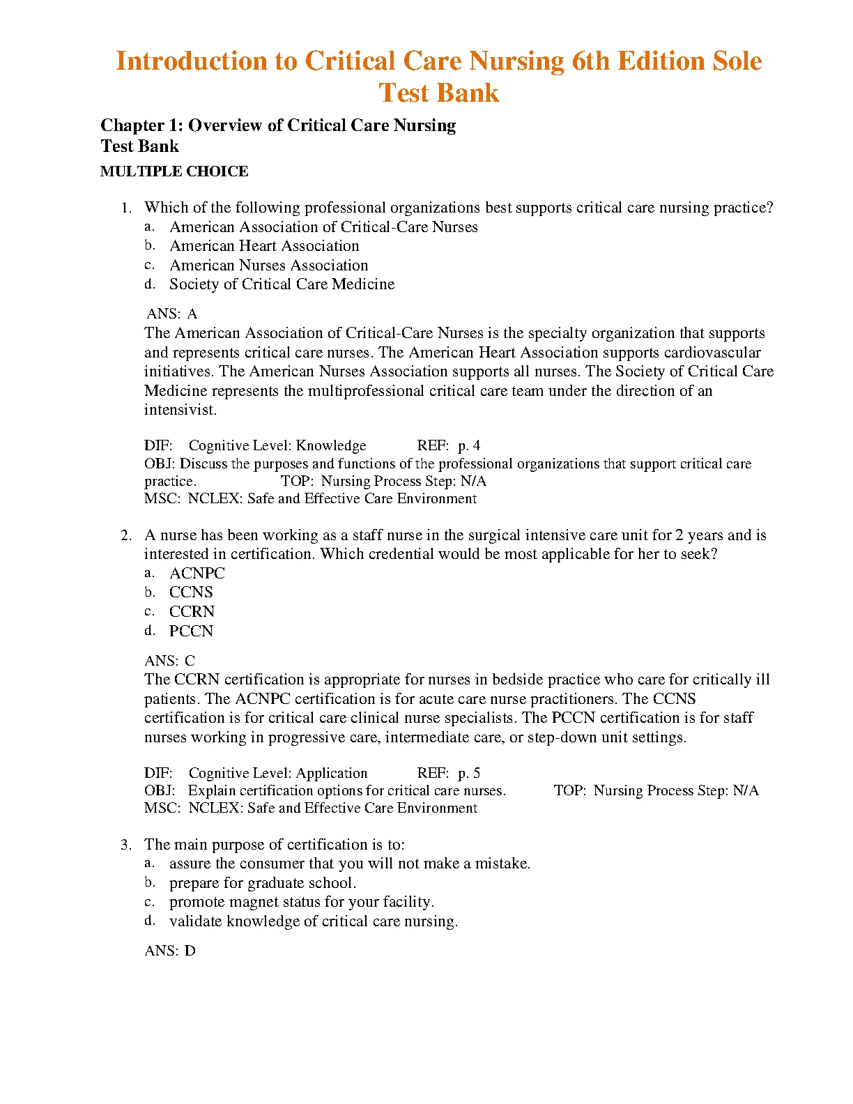 Introduction to Critical Care Nursing 6th Edition Sole Test Bank. DOWNLOAD on www.leakedexams.com INSTANTLY.