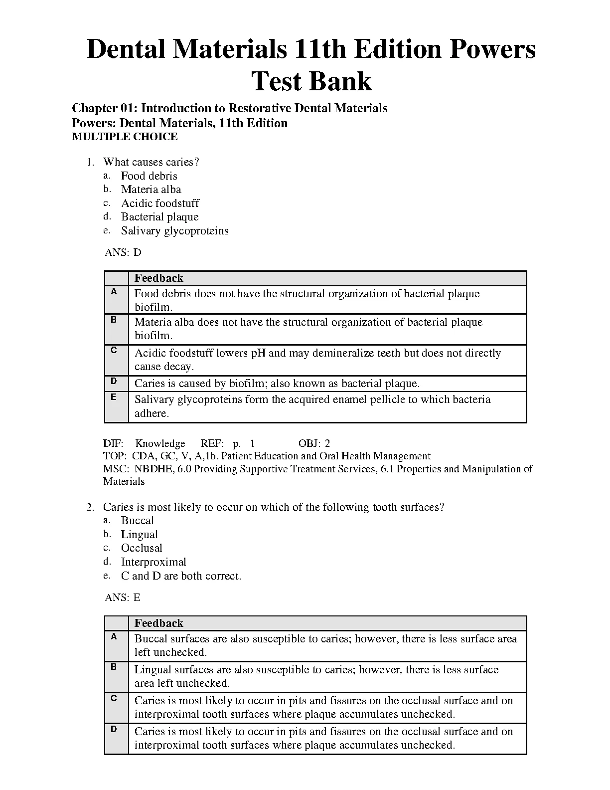 Dental Materials 11th Edition Powers Test Bank. DOWNLOAD on www.leakedexams.com INSTANTLY.